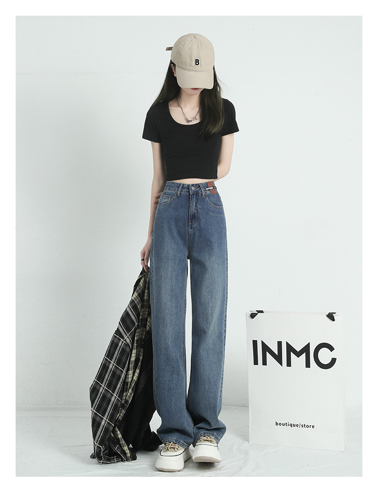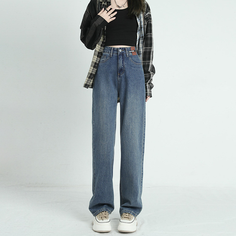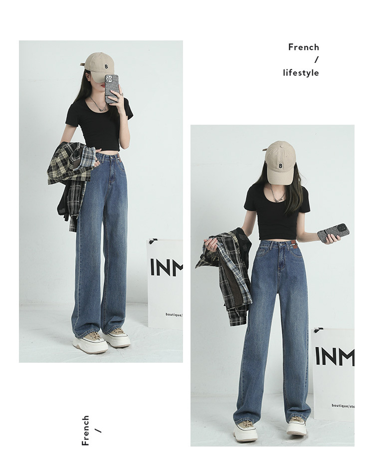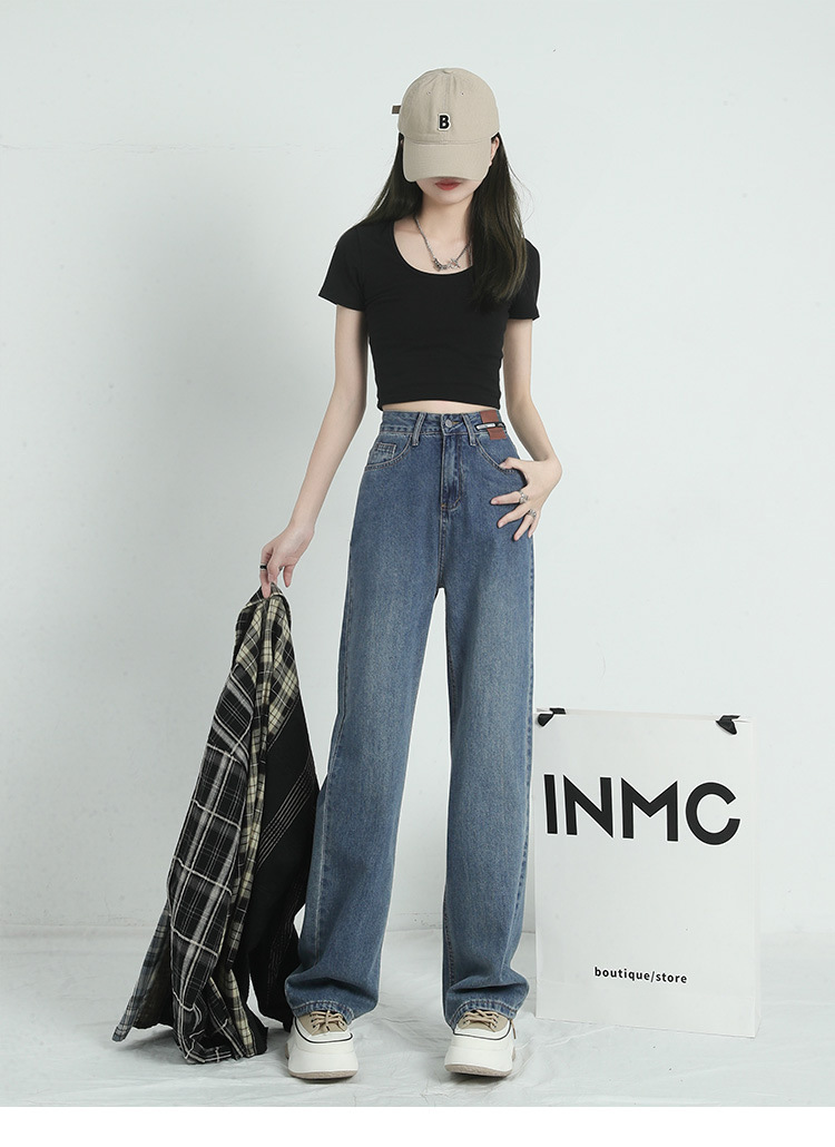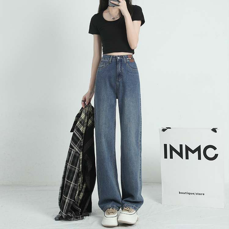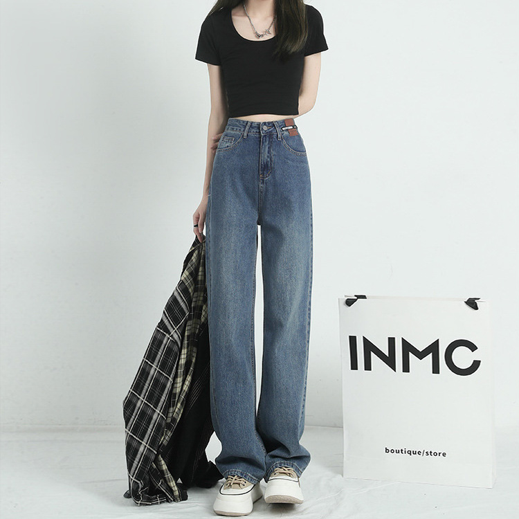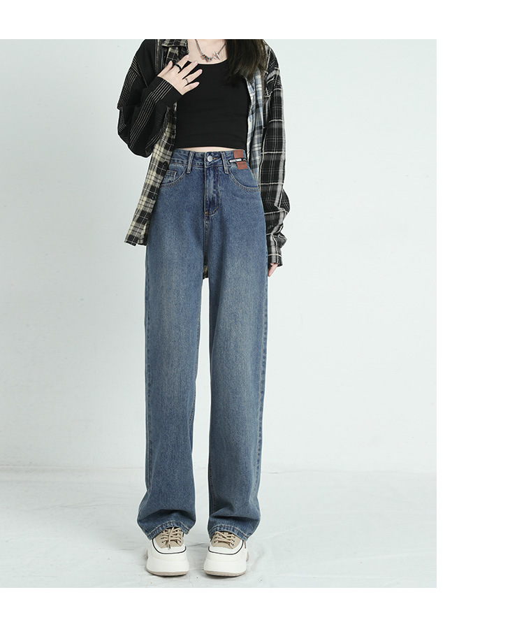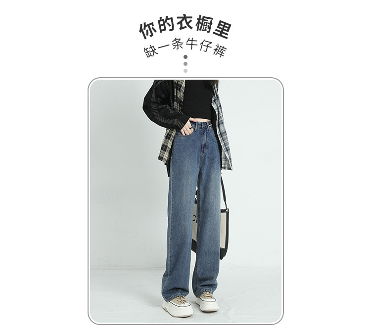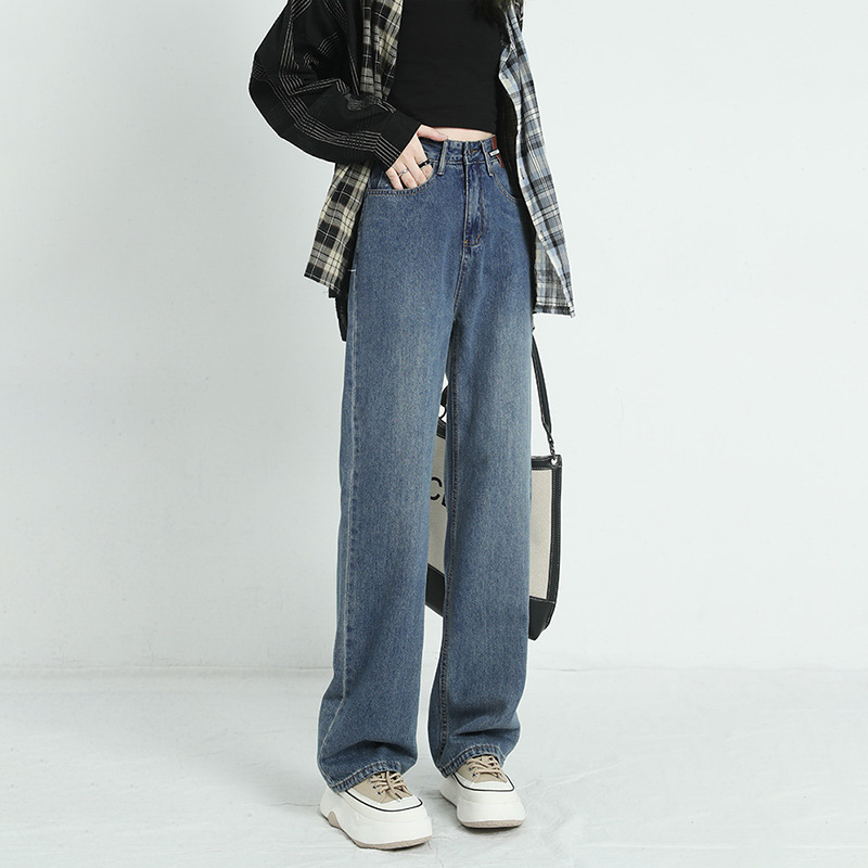 阔腿牛仔裤女秋冬季新款美式垂感做旧宽松高腰直筒拖地裤韩式显瘦
