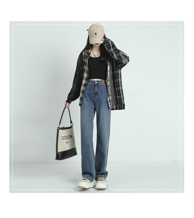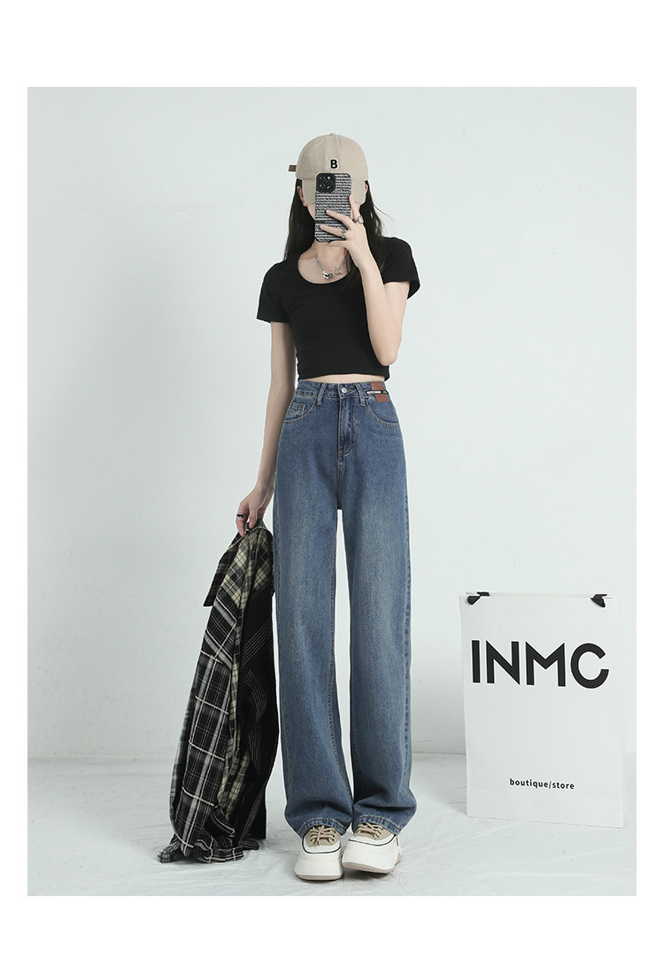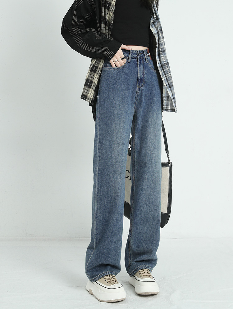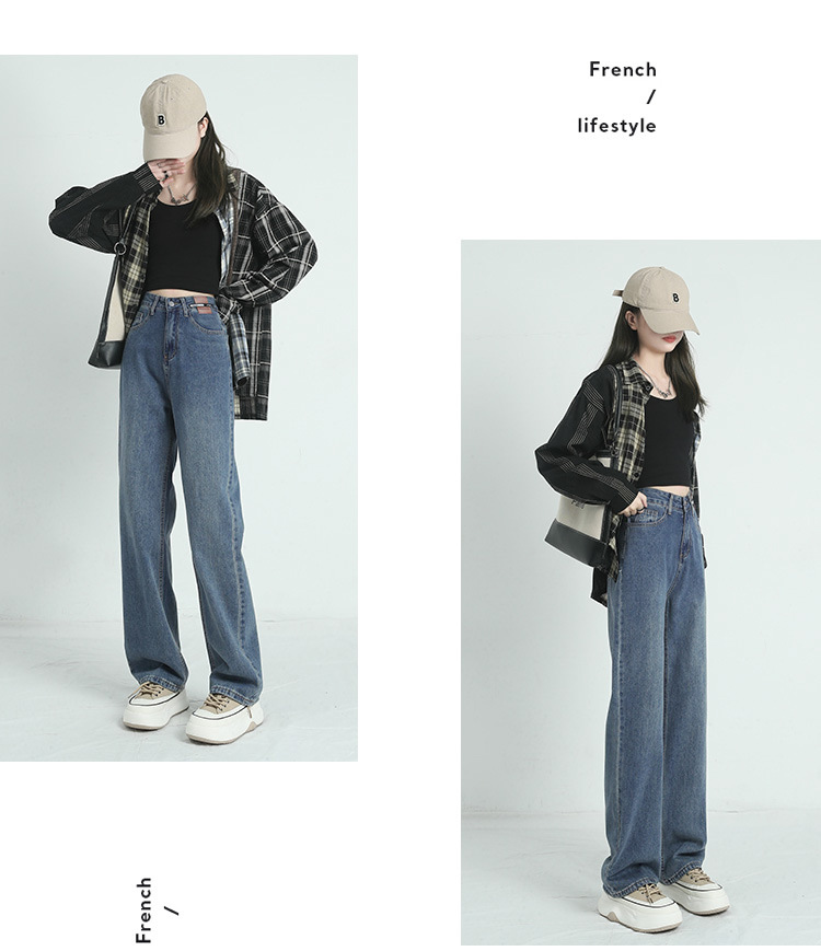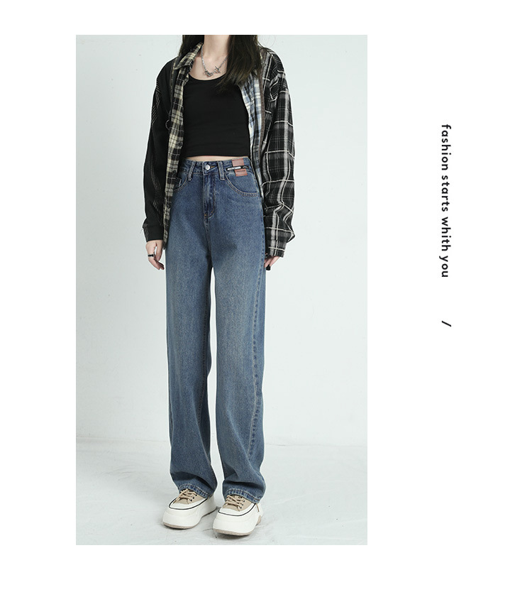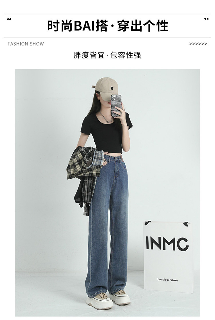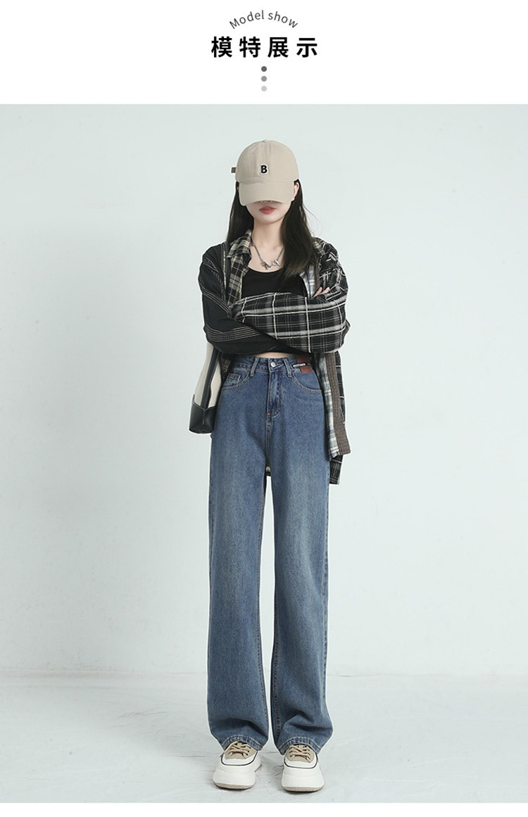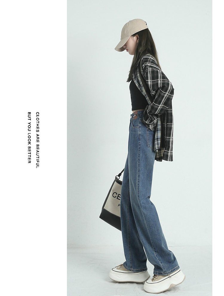 阔腿牛仔裤女秋冬季新款美式垂感做旧宽松高腰直筒拖地裤韩式显瘦