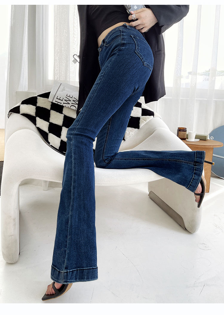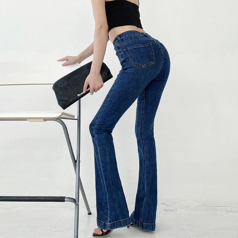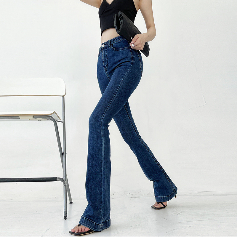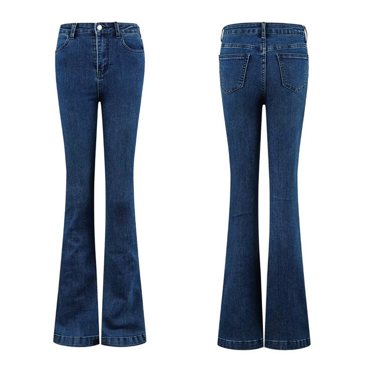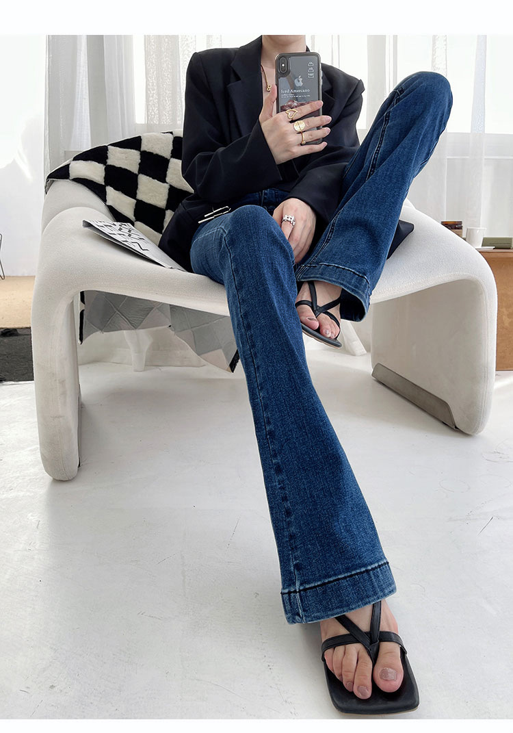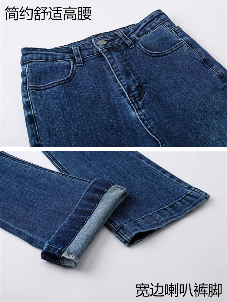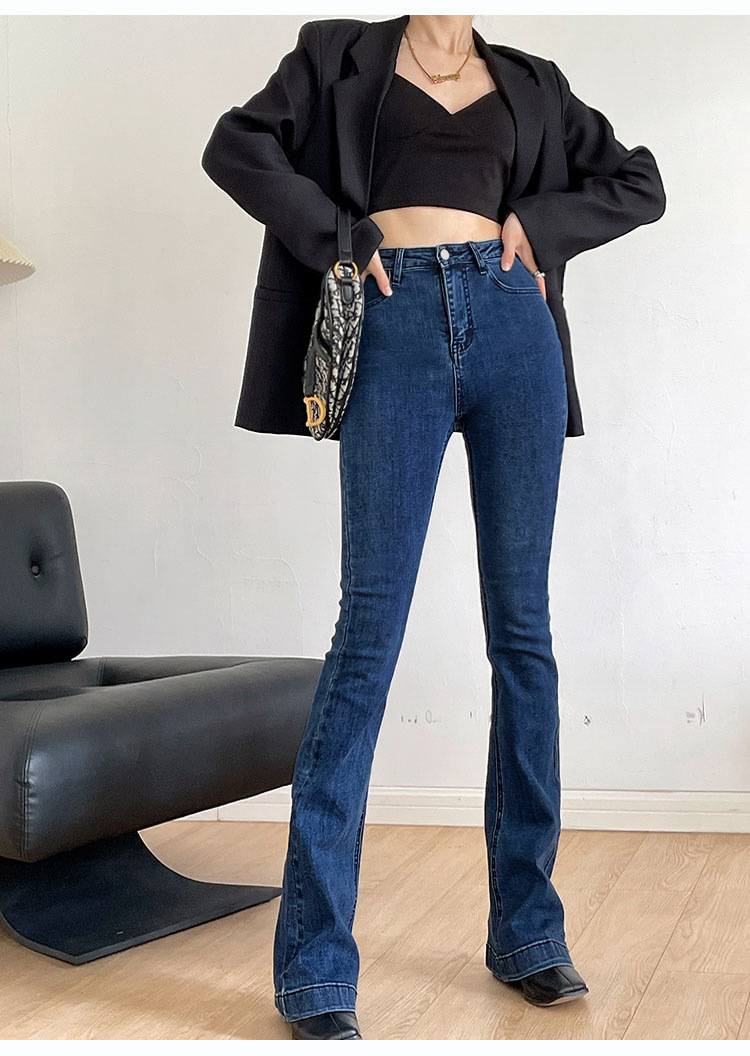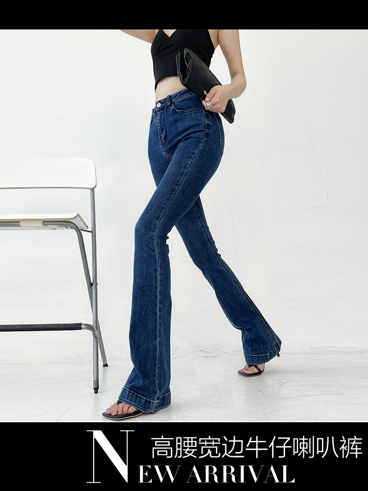 深蓝色喇叭牛仔裤女高腰弹力修身年秋冬新款显瘦紧身微喇长裤