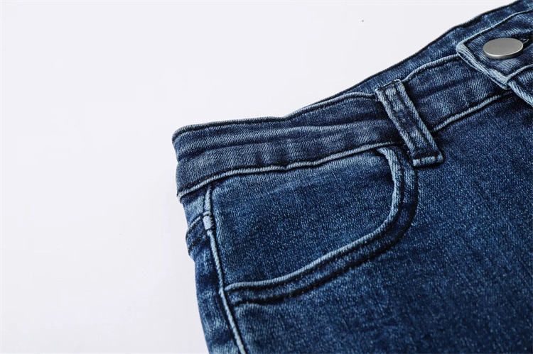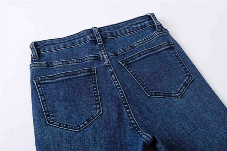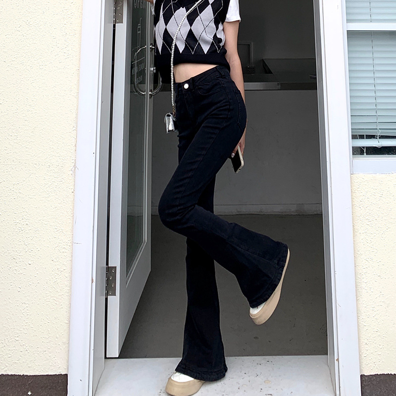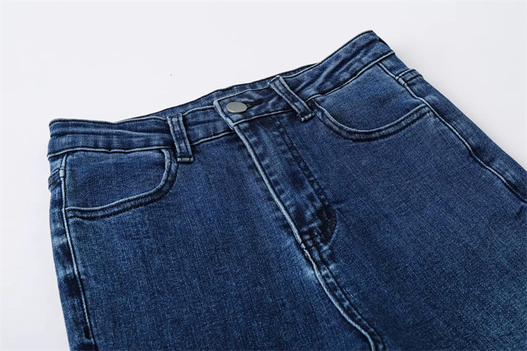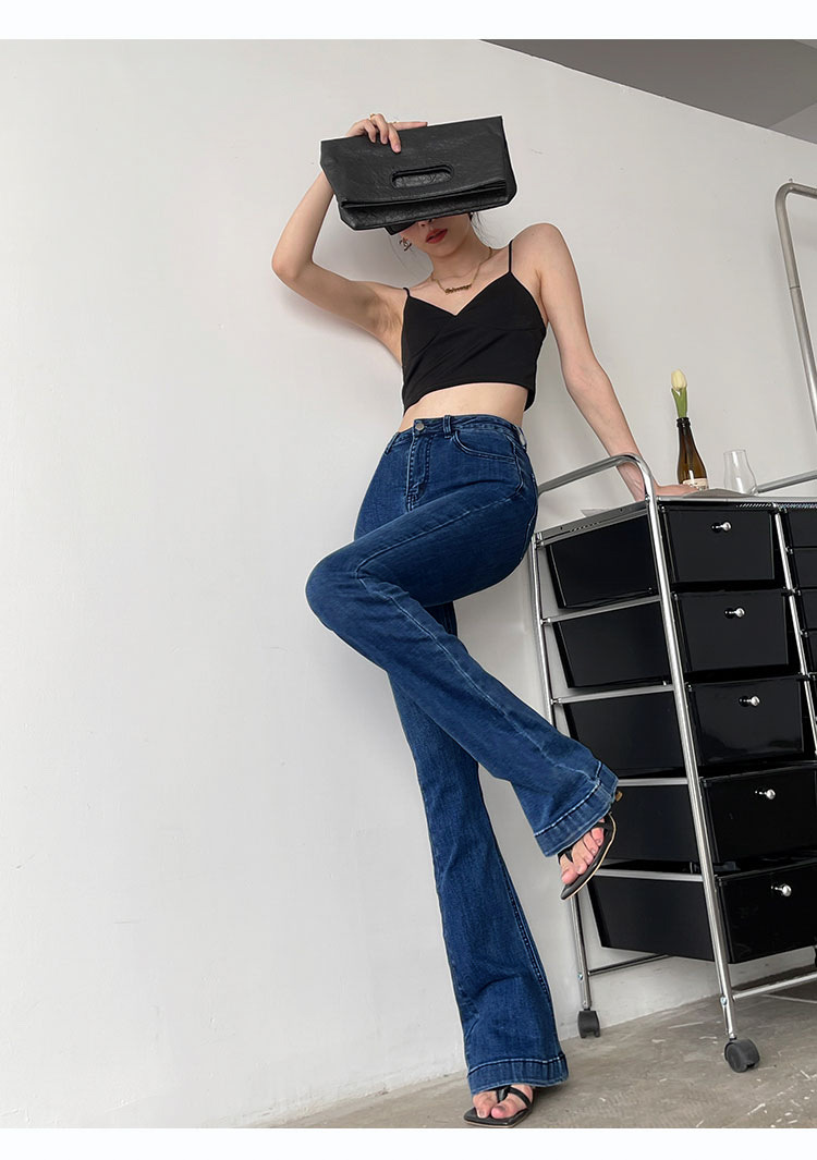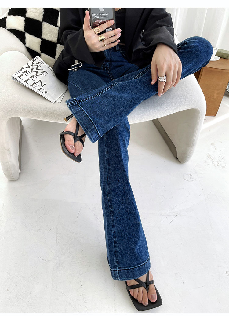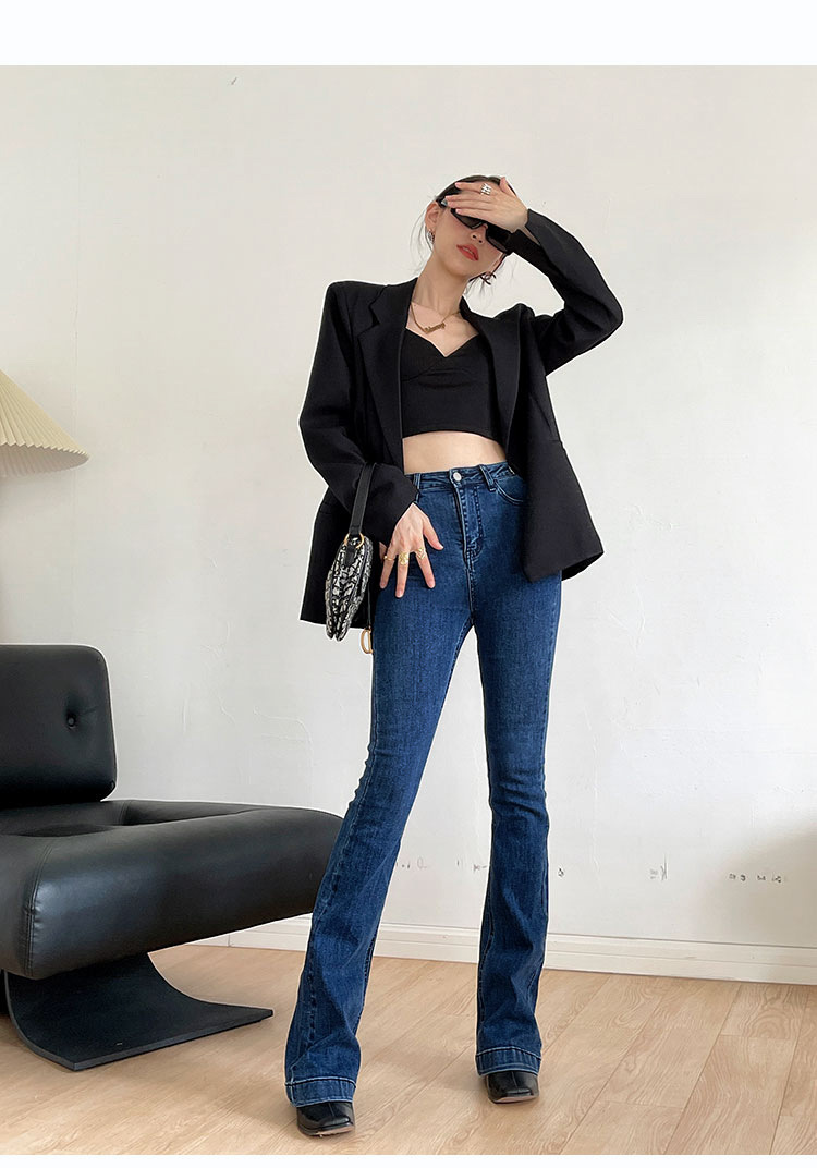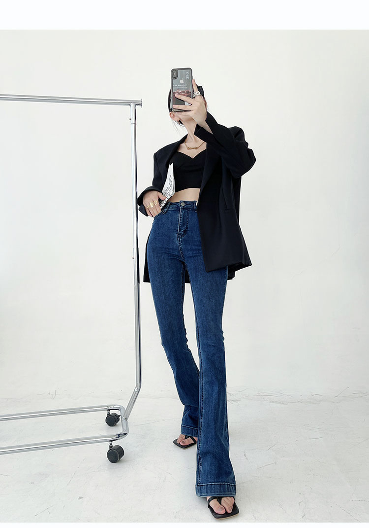 深蓝色喇叭牛仔裤女高腰弹力修身年秋冬新款显瘦紧身微喇长裤