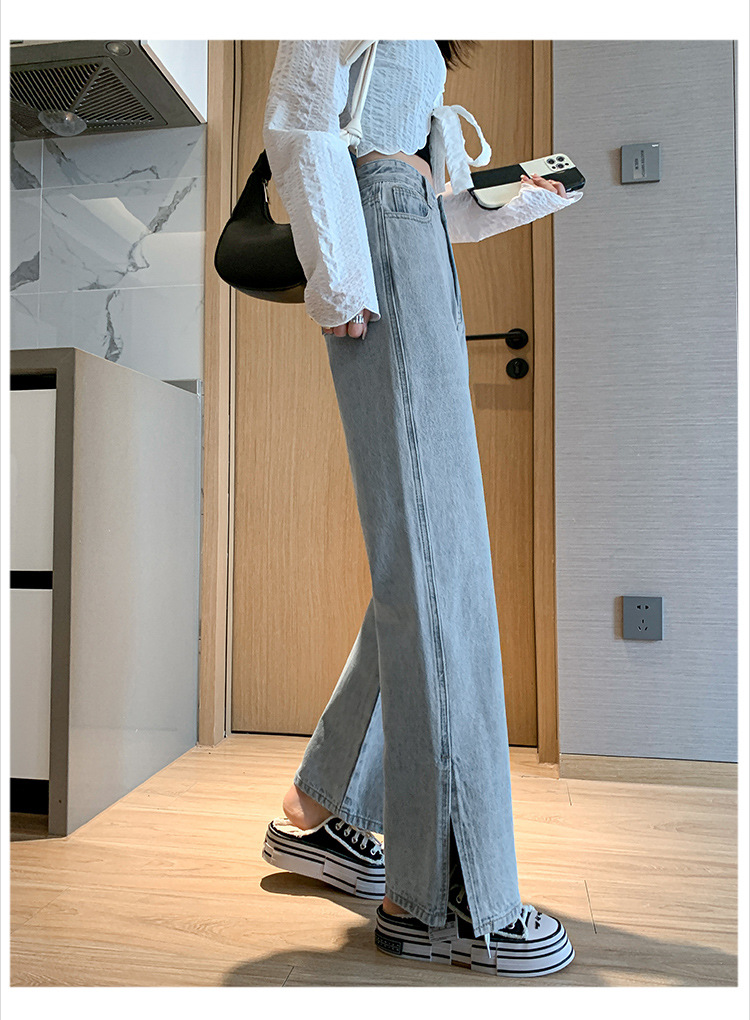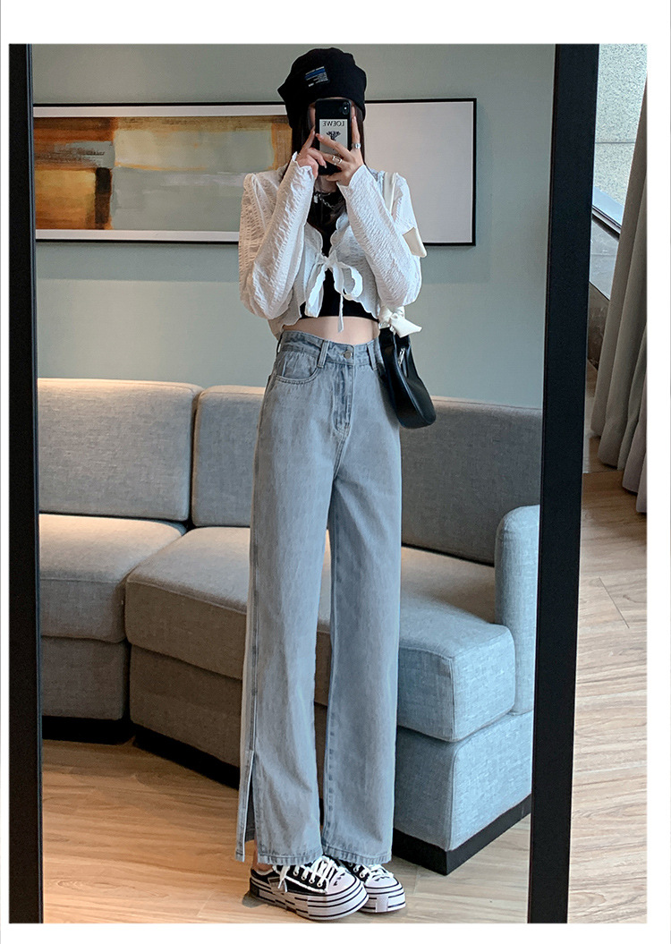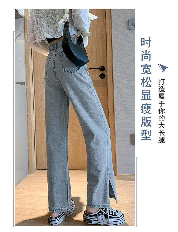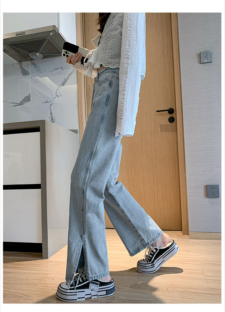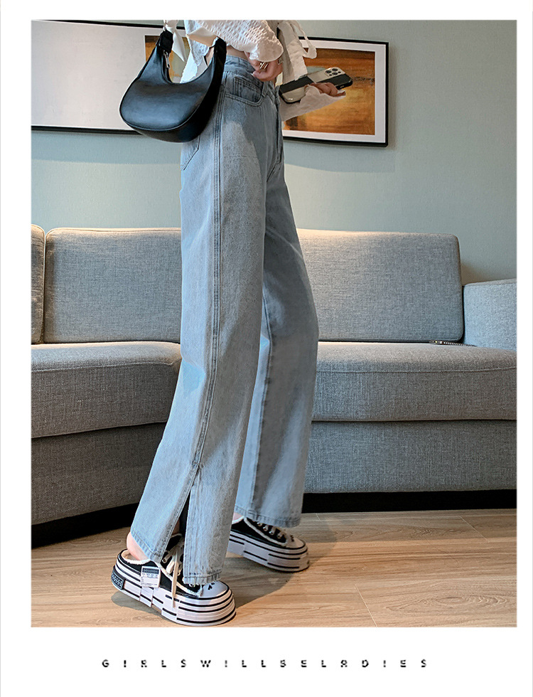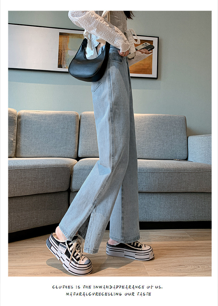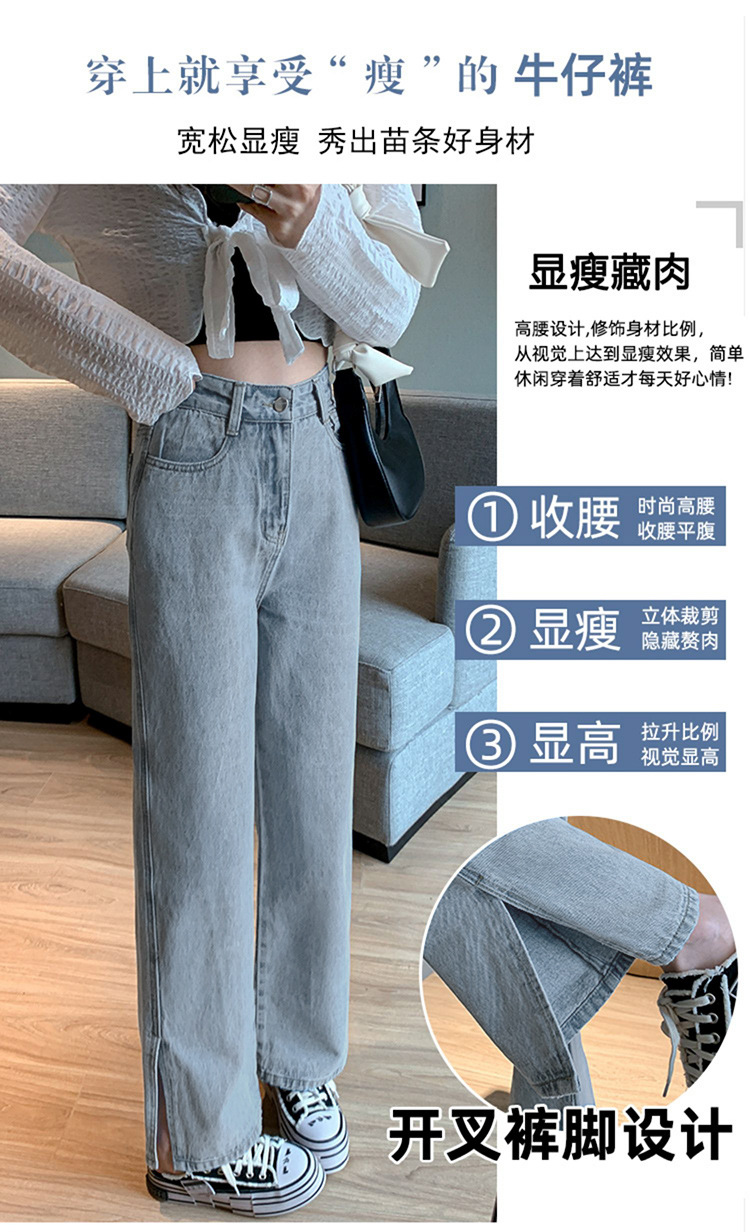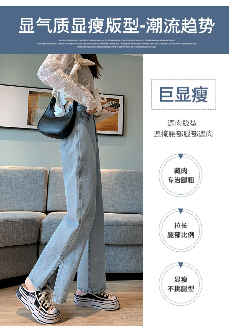 侧开叉牛仔阔腿裤女小众秋冬季新款宽松直筒高腰显瘦垂感拖地长裤