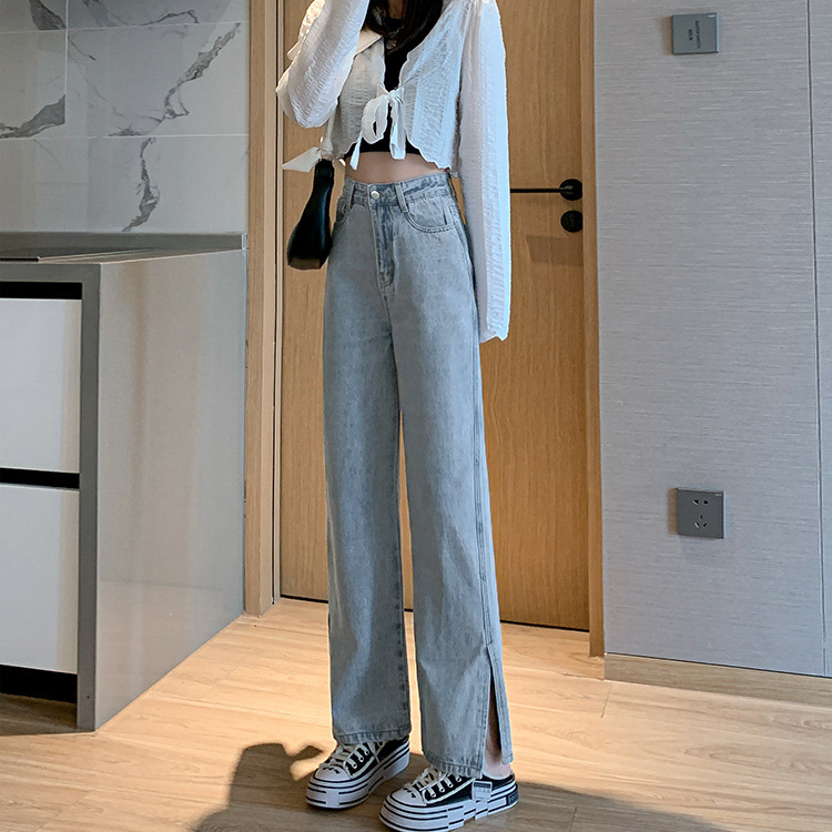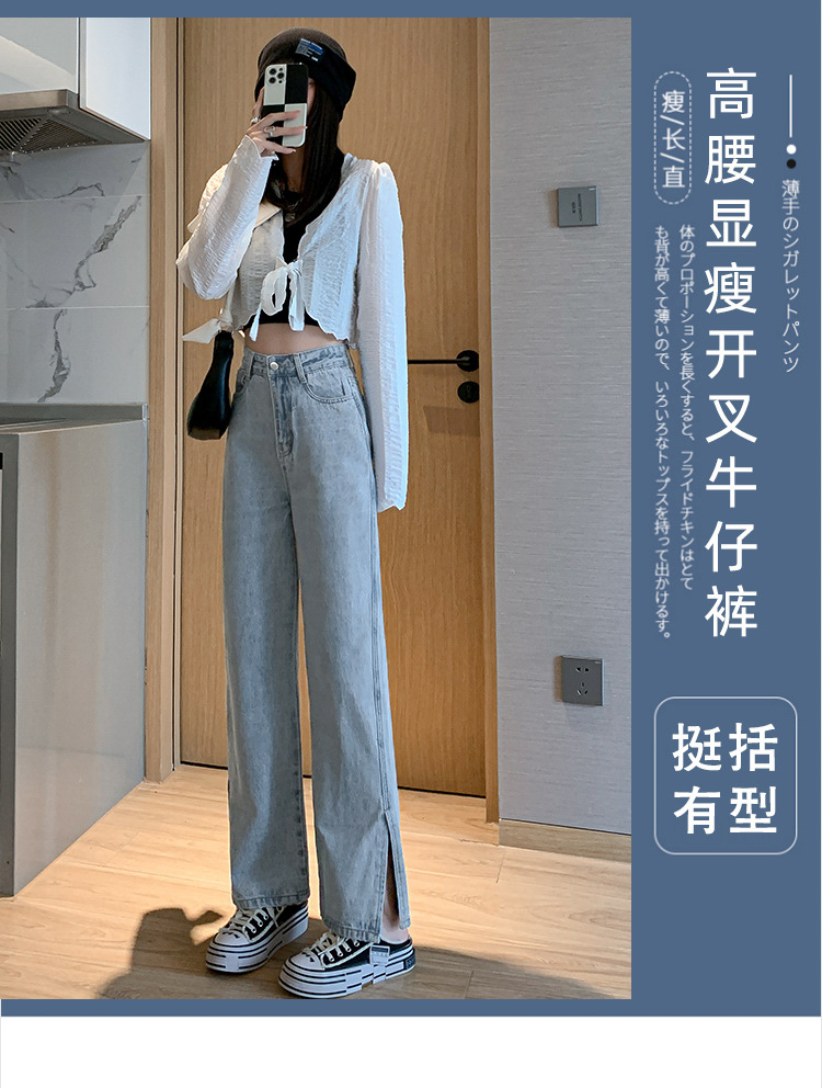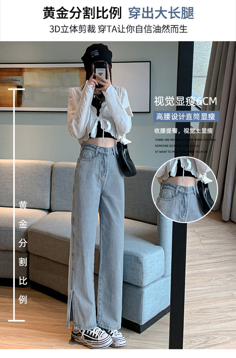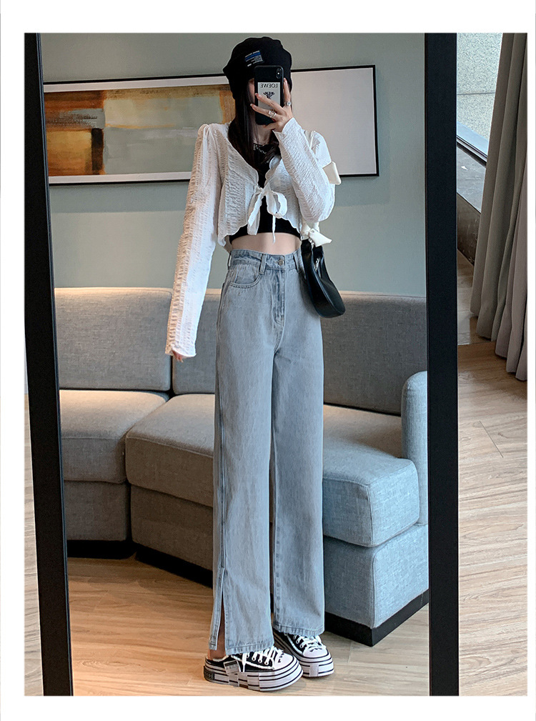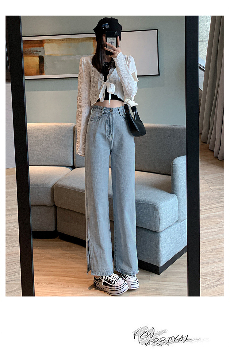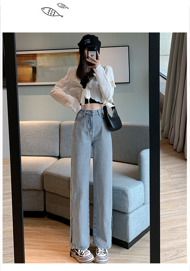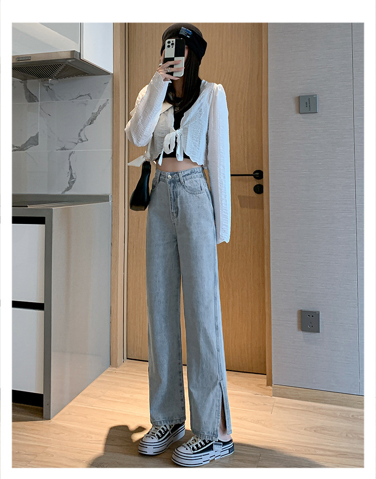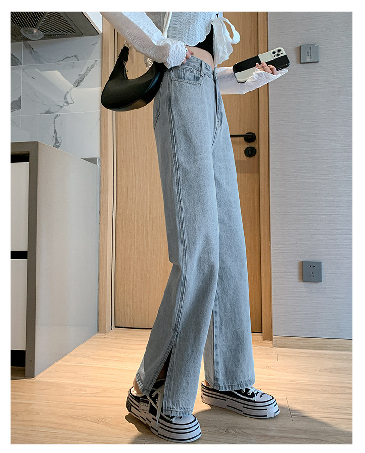 侧开叉牛仔阔腿裤女小众秋冬季新款宽松直筒高腰显瘦垂感拖地长裤