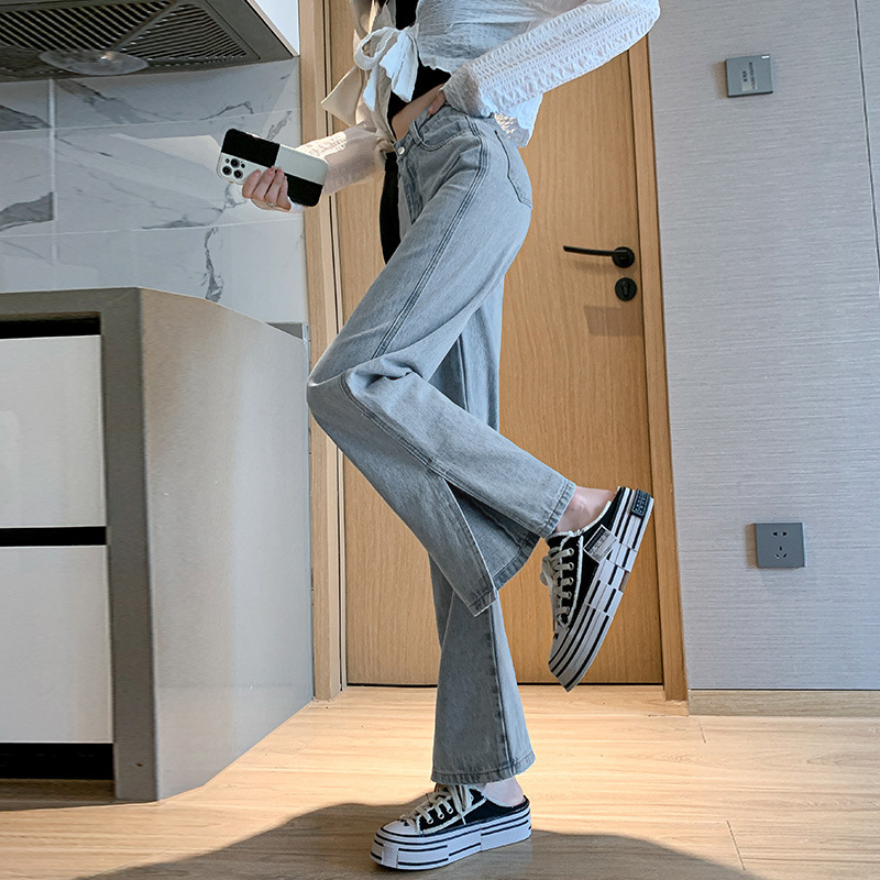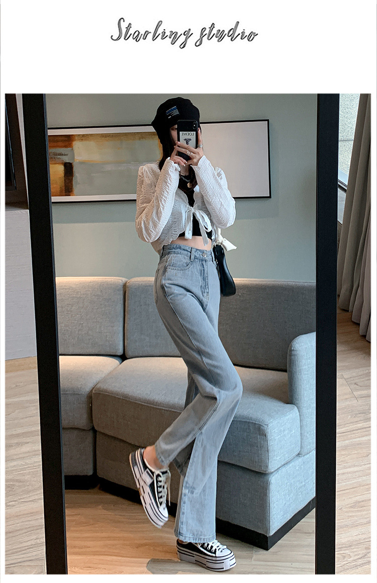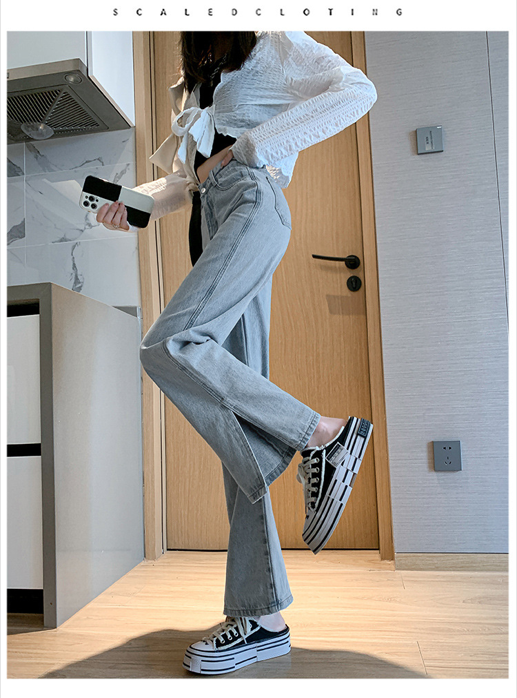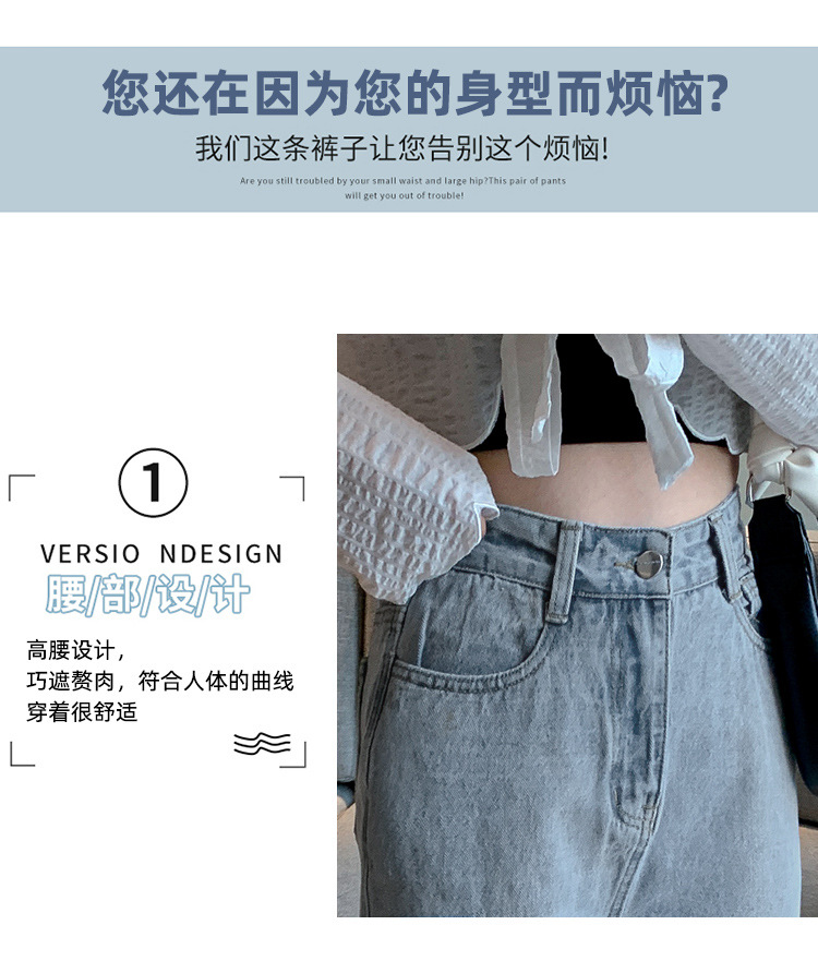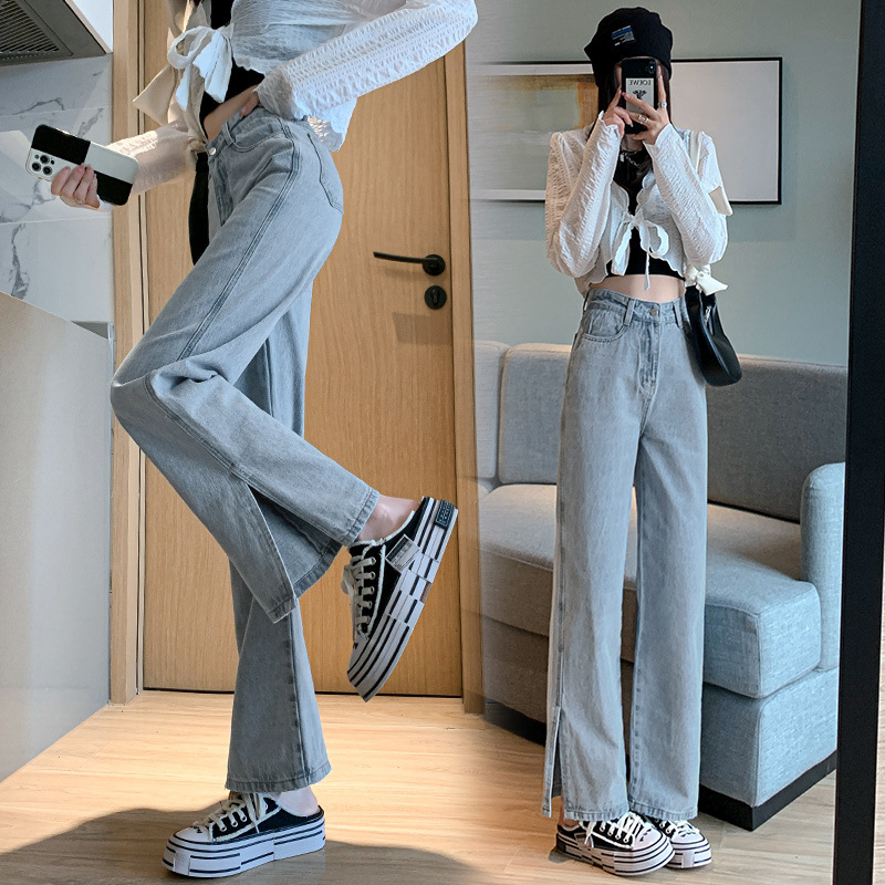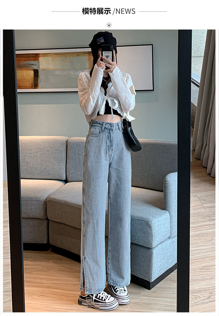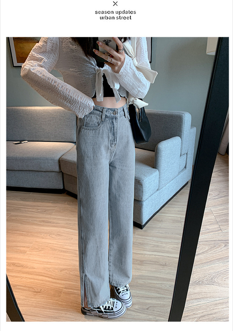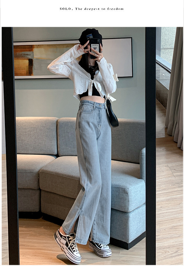 侧开叉牛仔阔腿裤女小众秋冬季新款宽松直筒高腰显瘦垂感拖地长裤