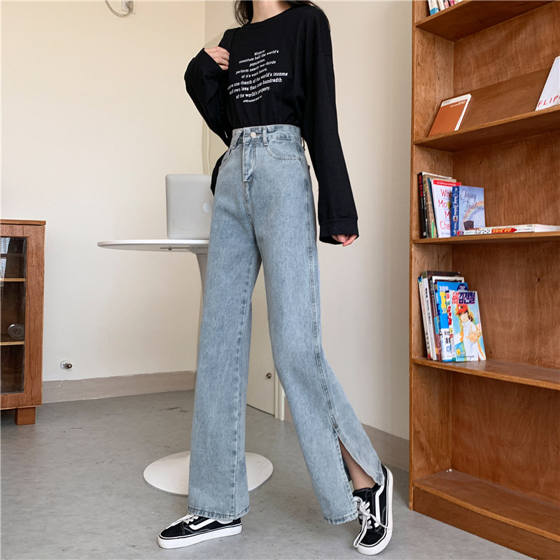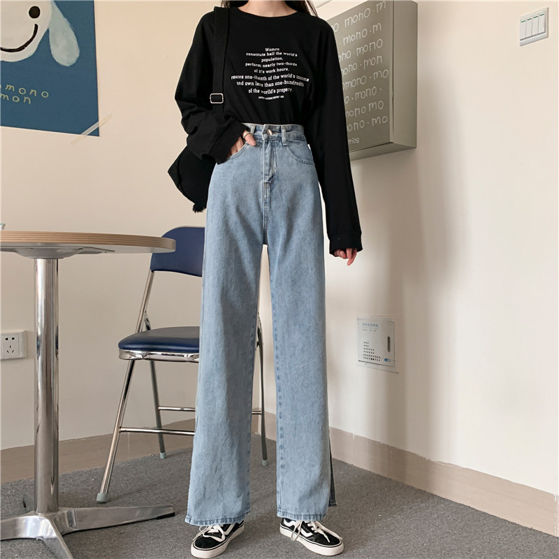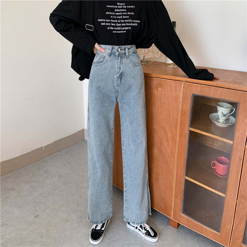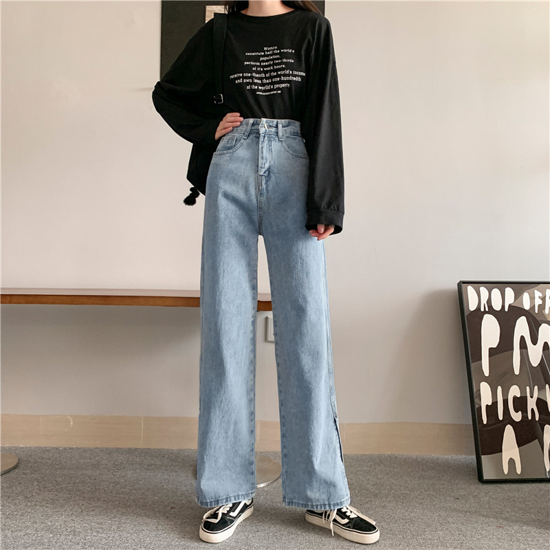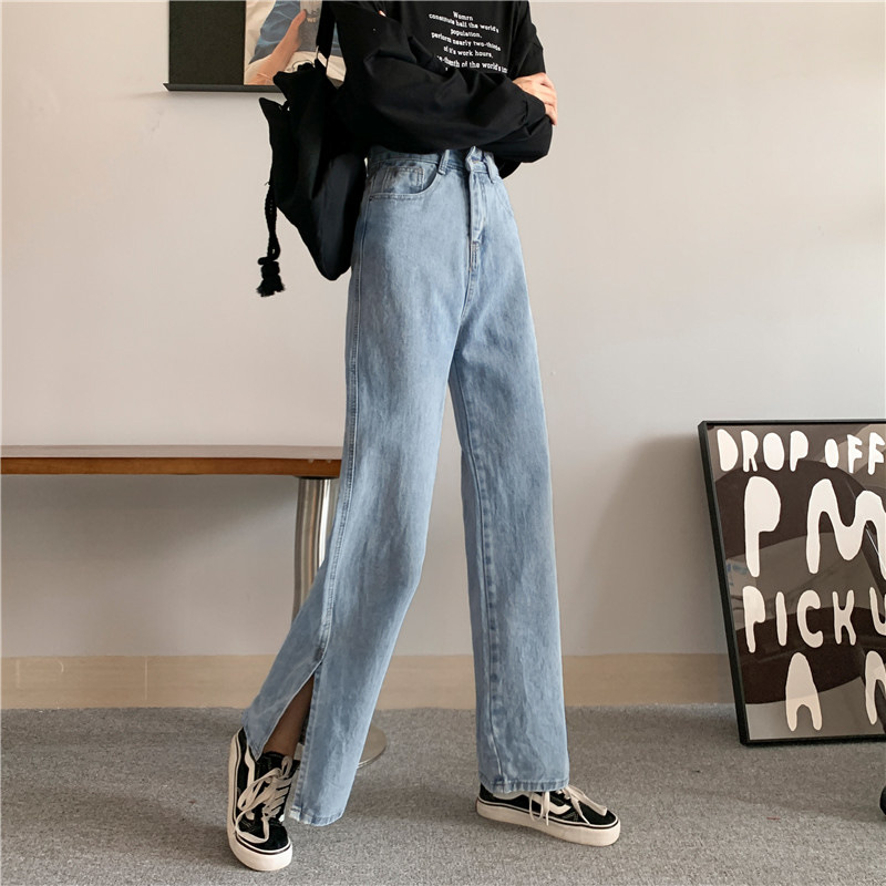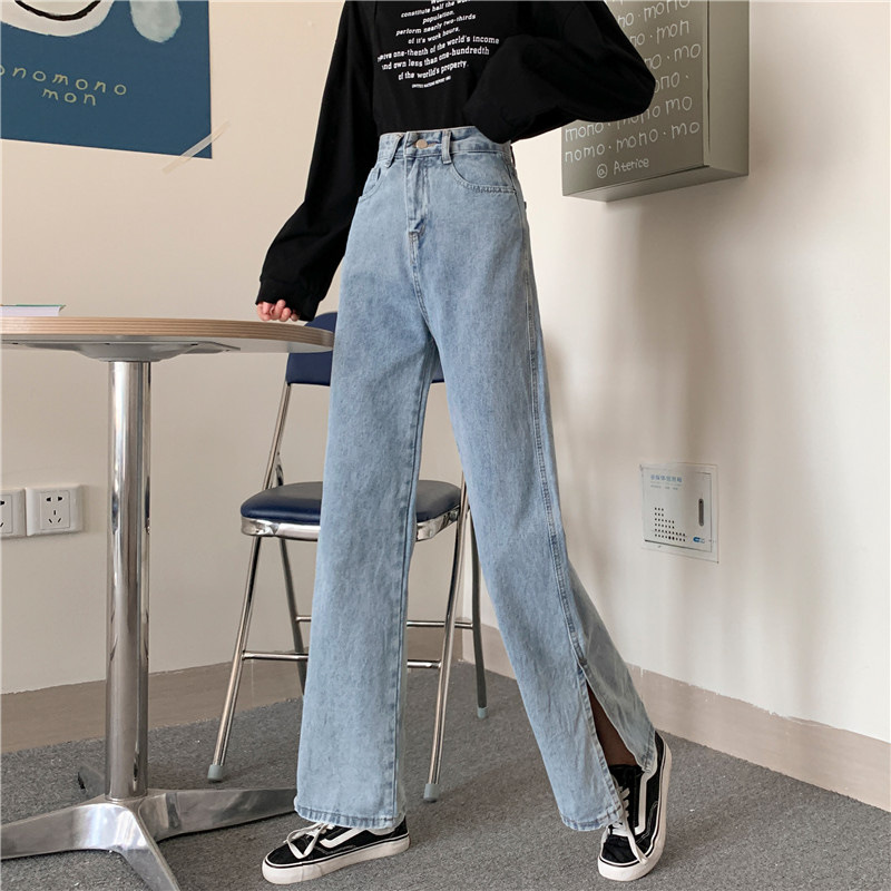 显瘦高腰开叉阔腿牛仔裤女直筒宽松秋冬年新款垂感拖地裤修身