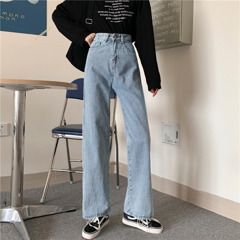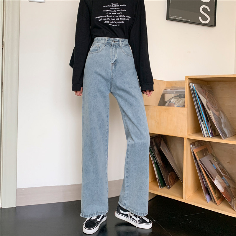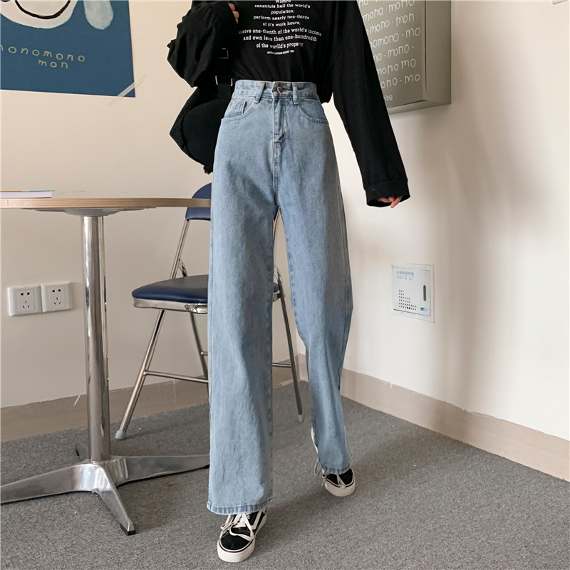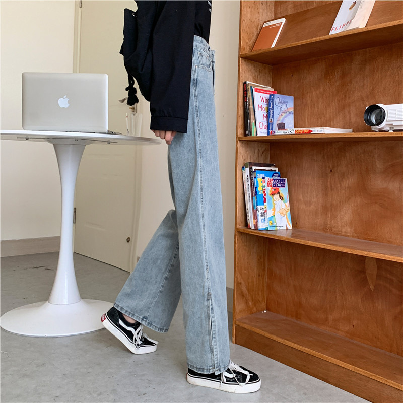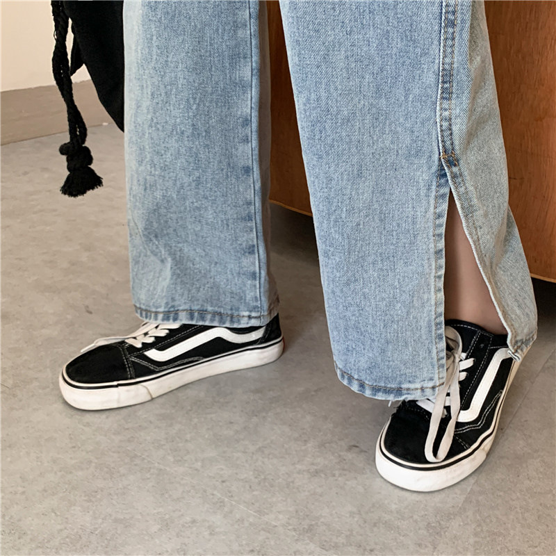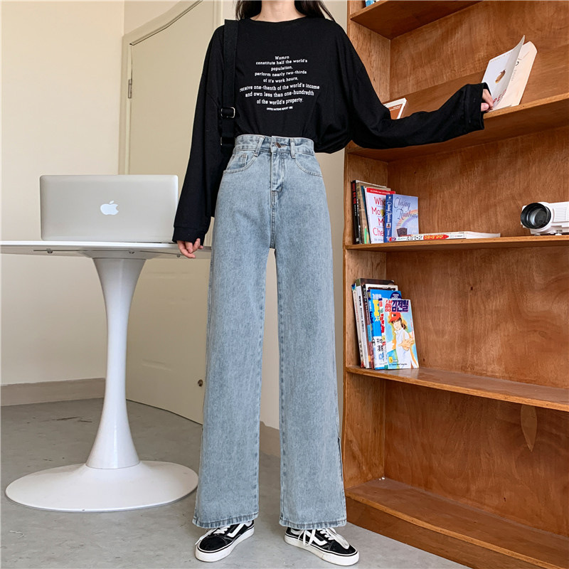 显瘦高腰开叉阔腿牛仔裤女直筒宽松秋冬年新款垂感拖地裤修身