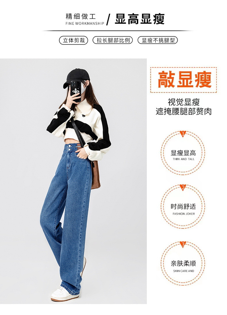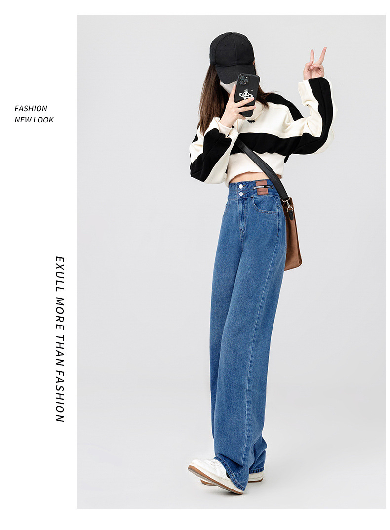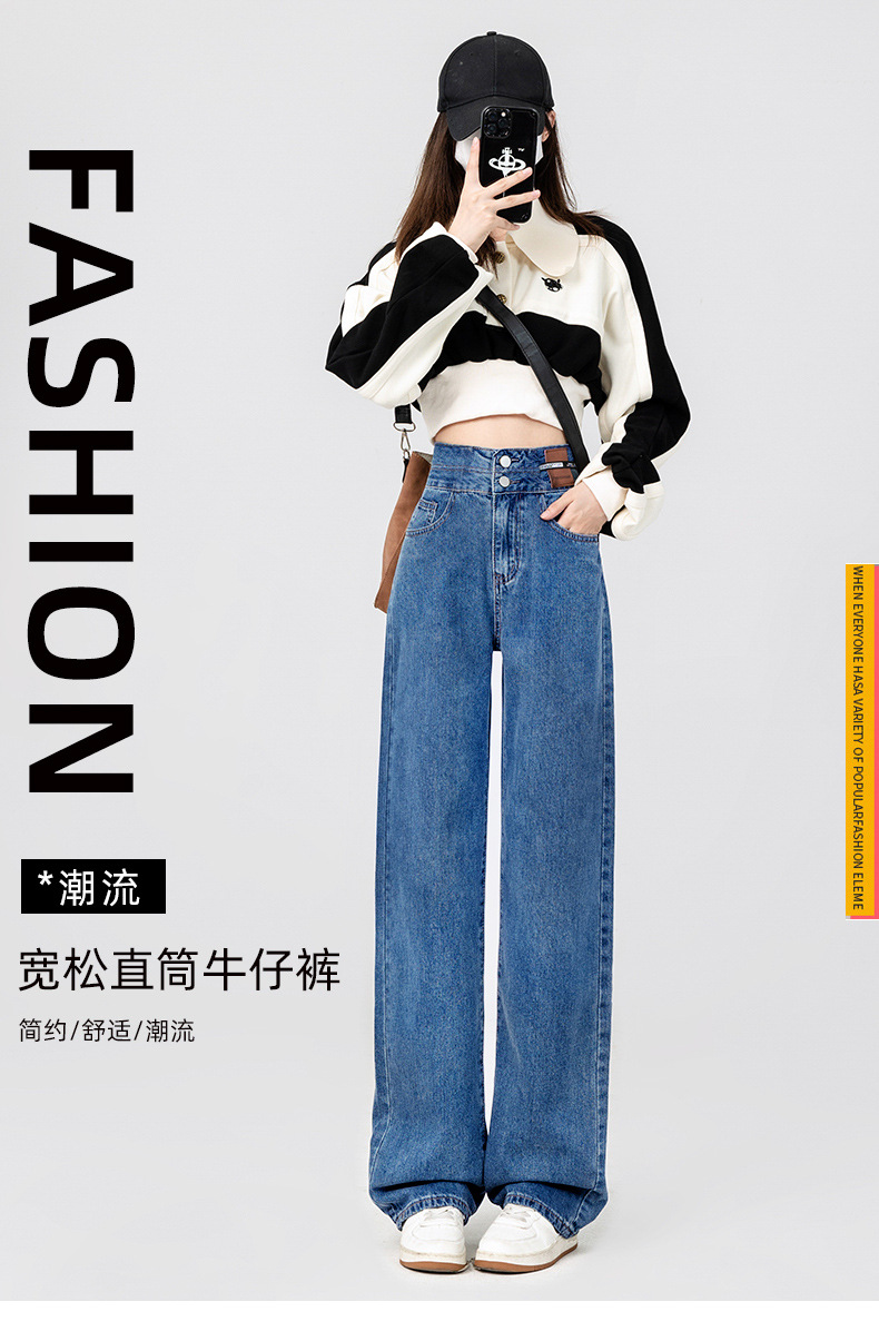 891休闲百搭高腰直筒阔腿牛仔裤女新款宽松显瘦垂感拖地裤ins高街