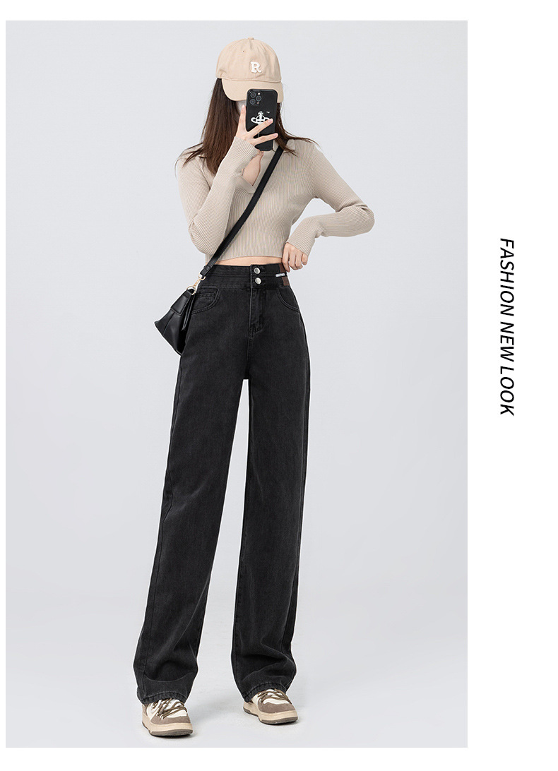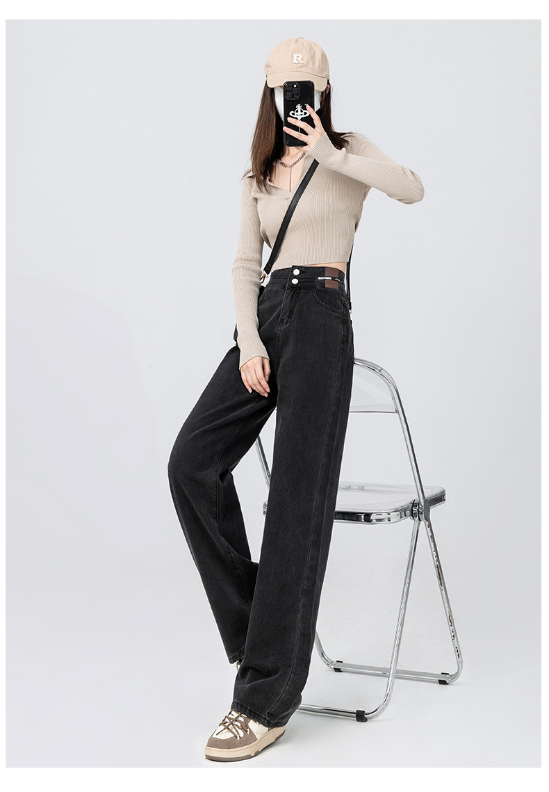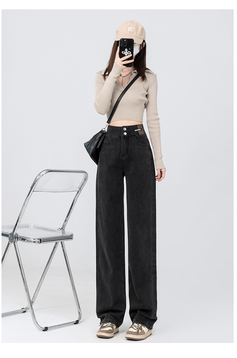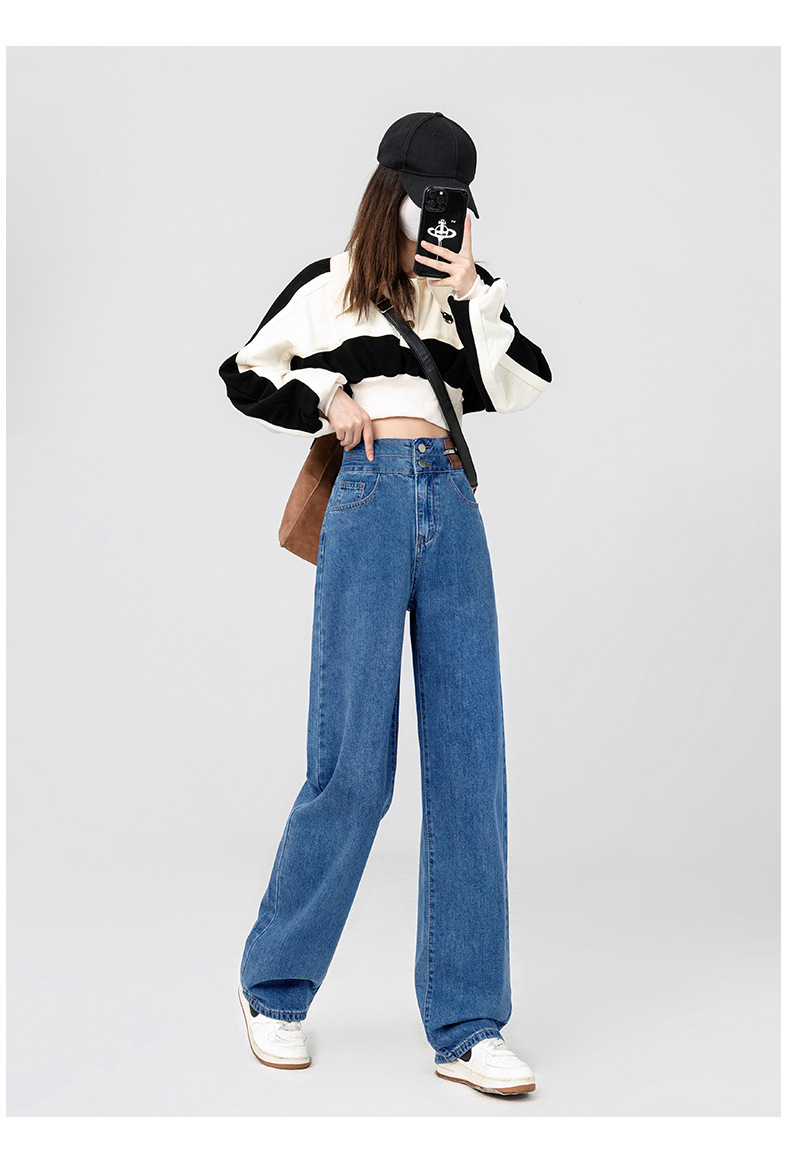 891休闲百搭高腰直筒阔腿牛仔裤女新款宽松显瘦垂感拖地裤ins高街