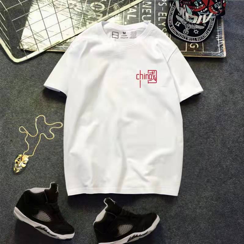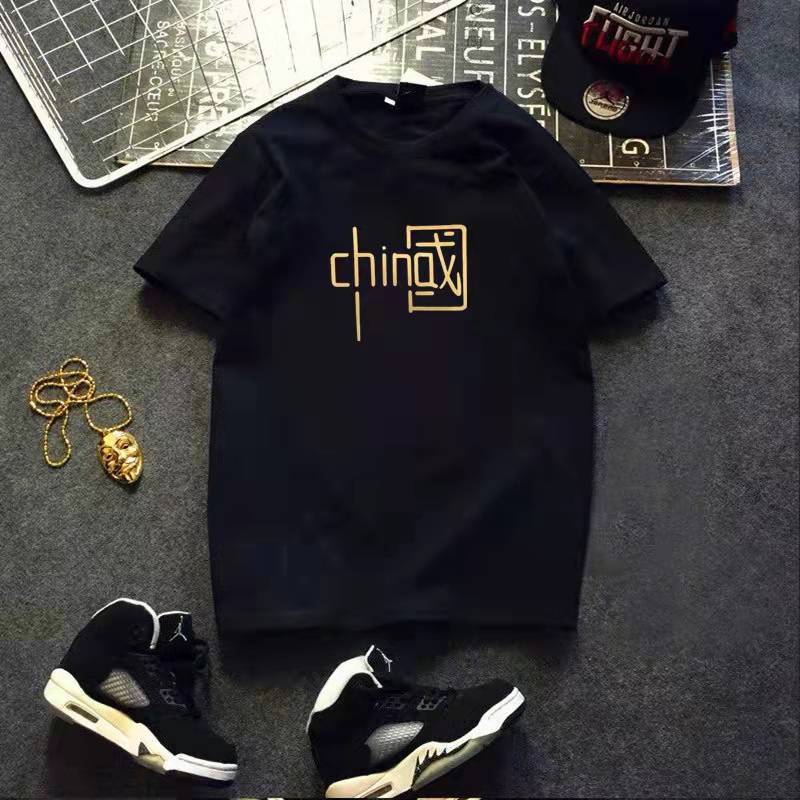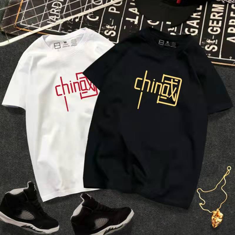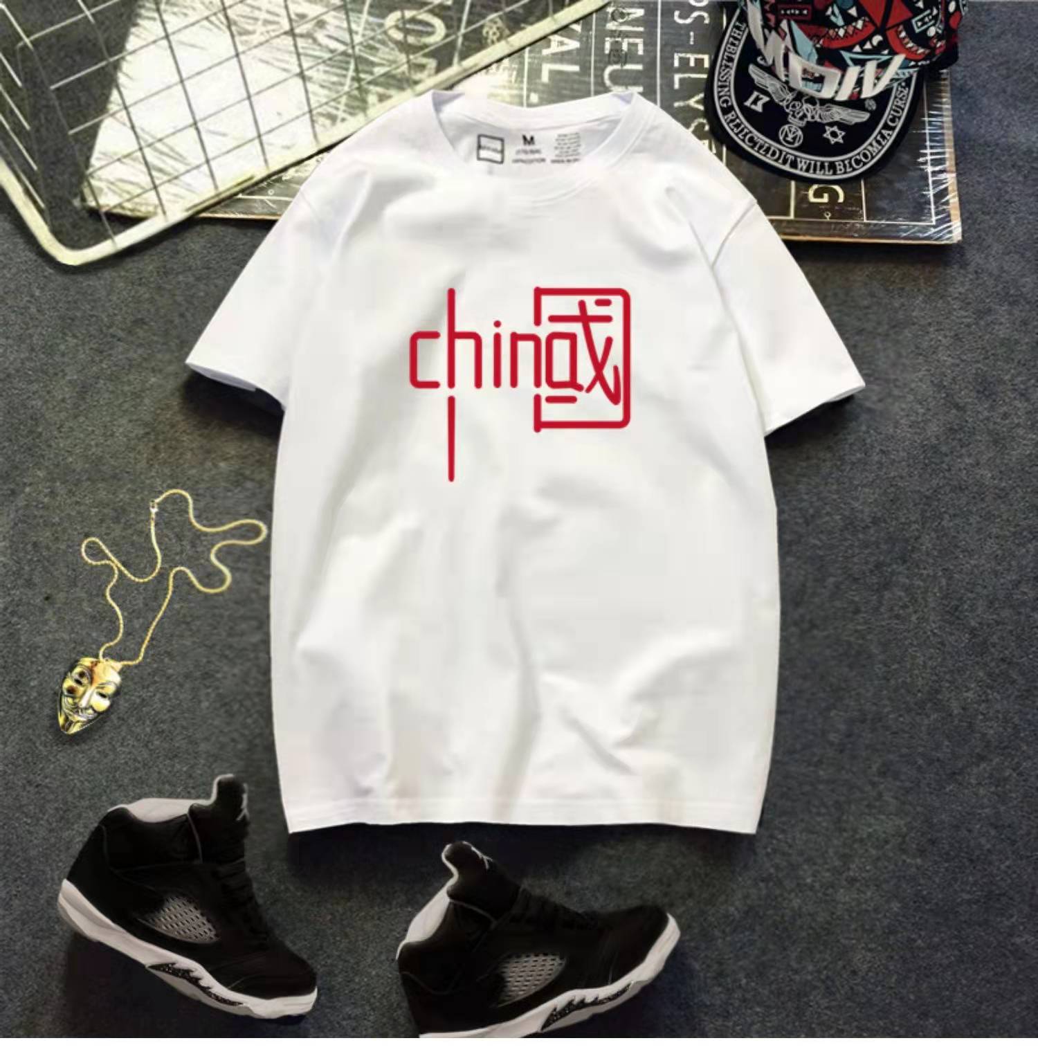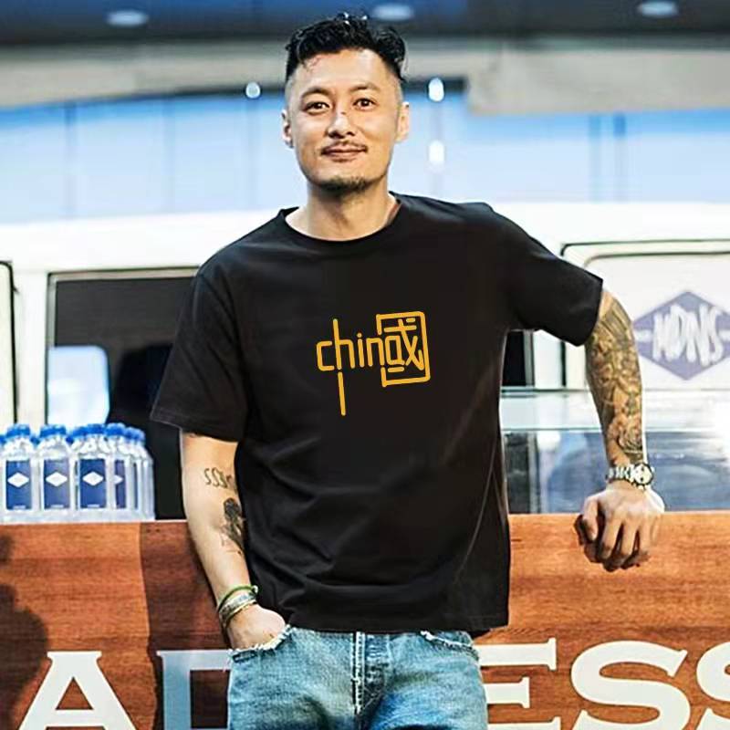夏季男士短袖t恤上衣宽松纯棉半袖潮牌潮流中国休闲重磅印花衣服
