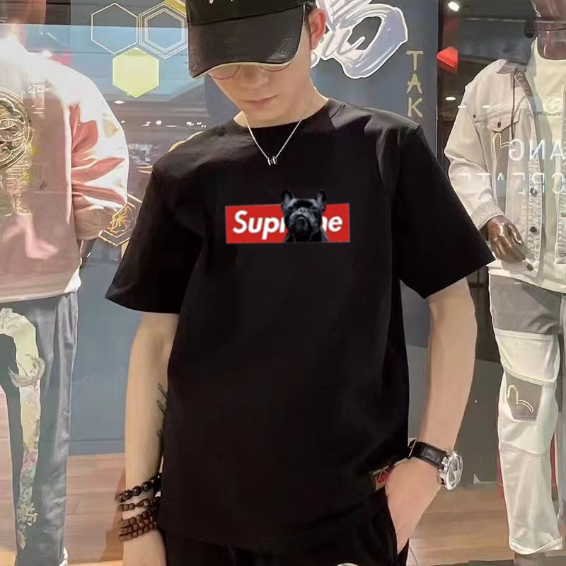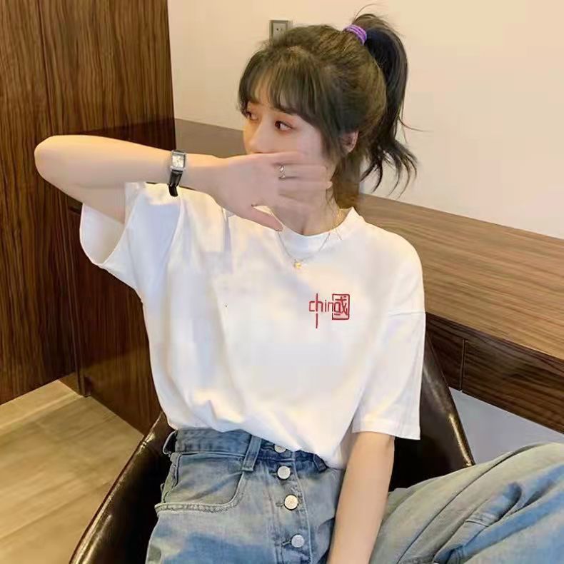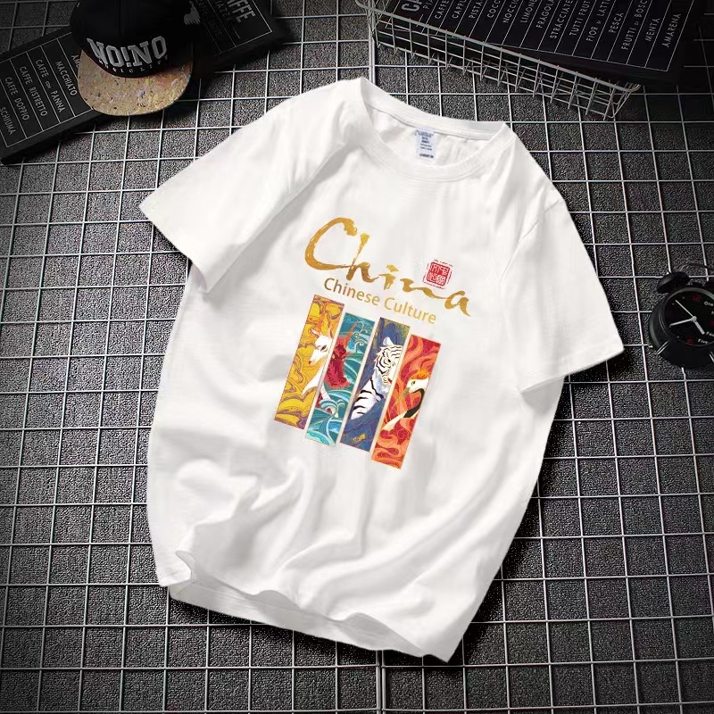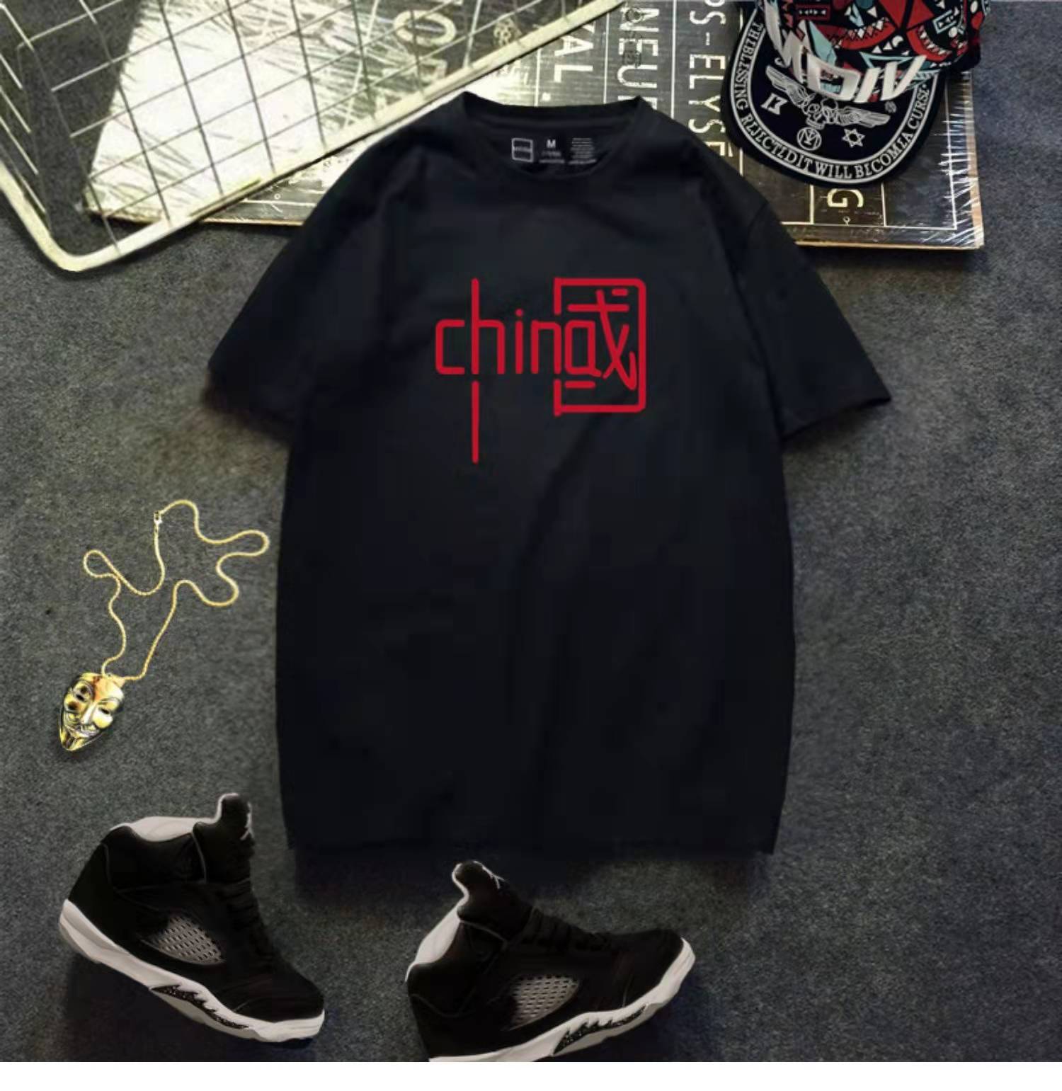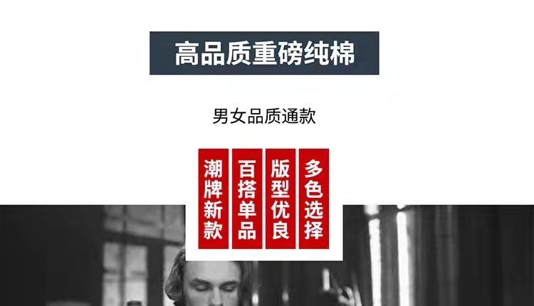 夏季男士短袖t恤上衣宽松纯棉半袖潮牌潮流中国休闲重磅印花衣服