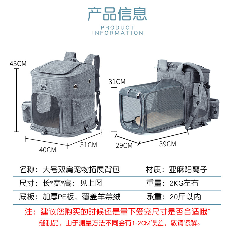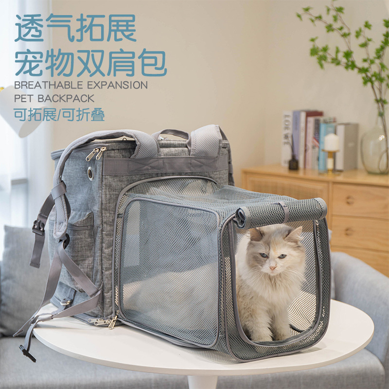 大容量透气拓展宠物双肩背包牛津布大号猫狗背包批发可扩展宠物包