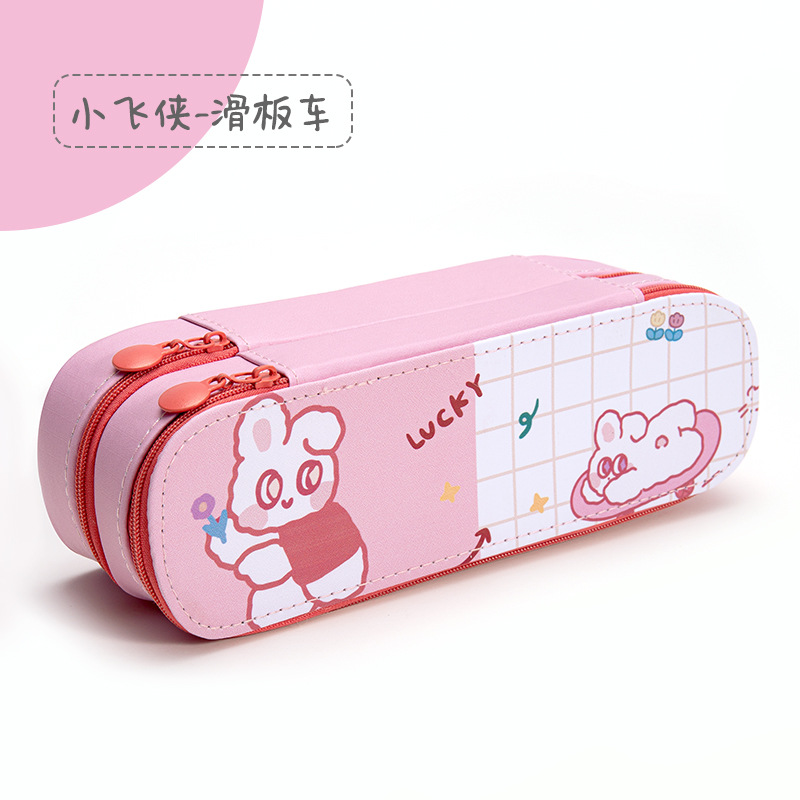 ins高颜值笔盒 创意大容量帆布双层笔袋初中小学男女生文具盒批发