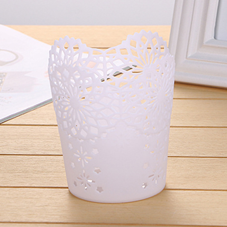 花边蕾丝镂空花纹笔筒创意收纳桶摆件可爱笔篓桌面小垃圾桶收纳篮