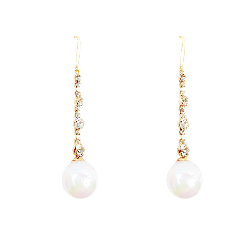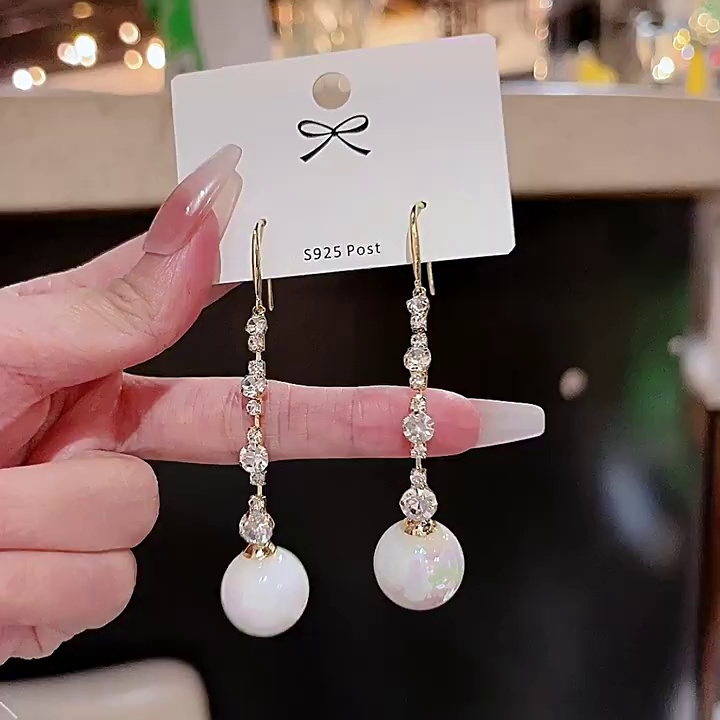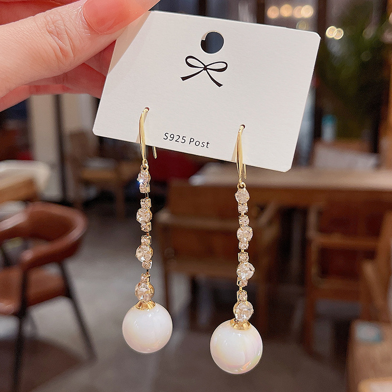 S925银针ins潮百搭气质人鱼珍珠耳钉轻奢小众长款流苏锆石耳环女