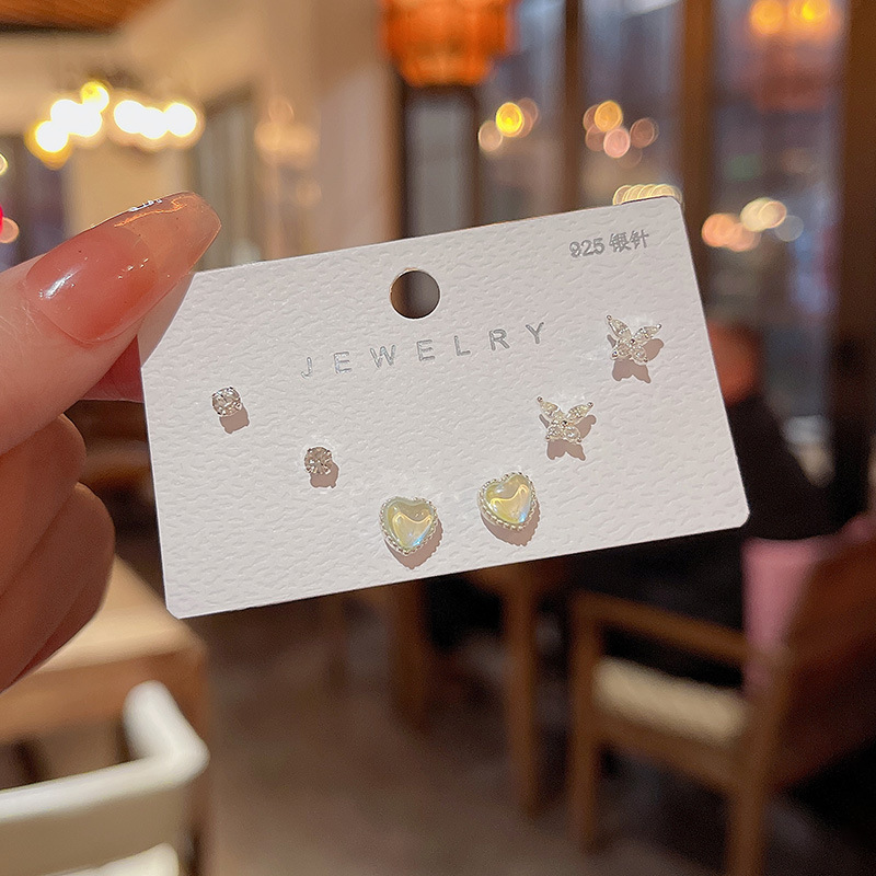 S925银针百搭气质渐变色爱心蝴蝶耳环网红耳饰简约养耳套装小耳钉