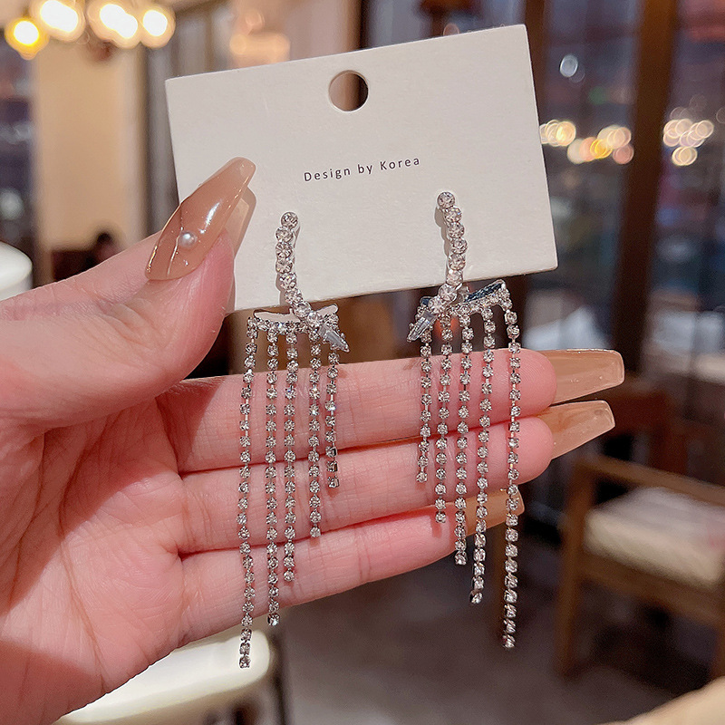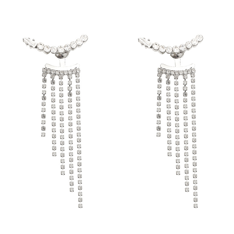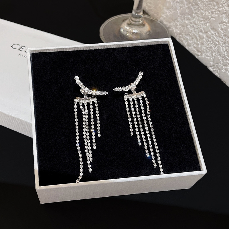 S925银针欧美夸张几何形耳钉耳饰批发轻奢小众长款流苏水钻耳环女