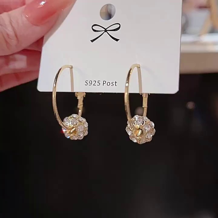 S925银针ins潮轻奢小众网红耳圈耳扣高级设计感幸运球闪钻耳环女