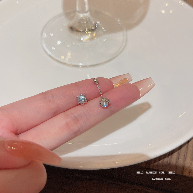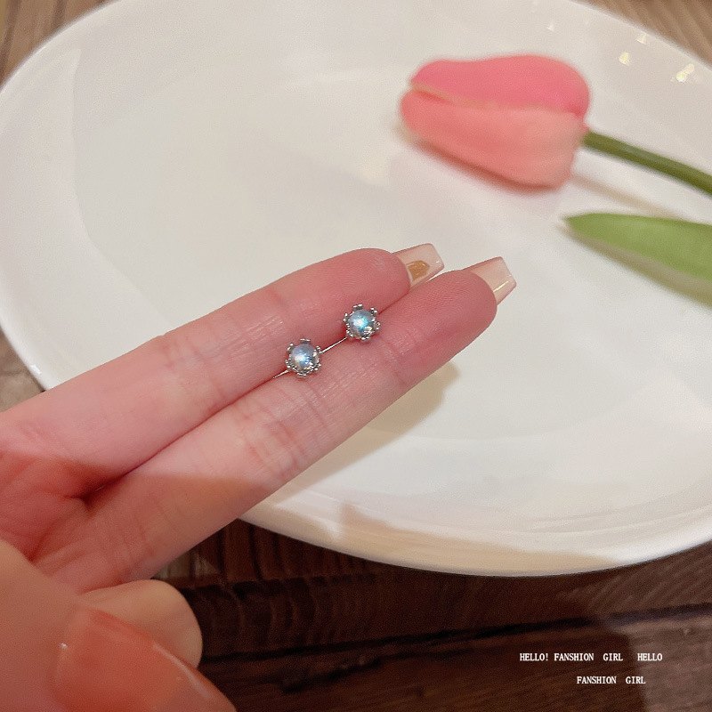 2023年新款ins潮学生养耳S925银针耳环耳饰简约气质月光石小耳钉