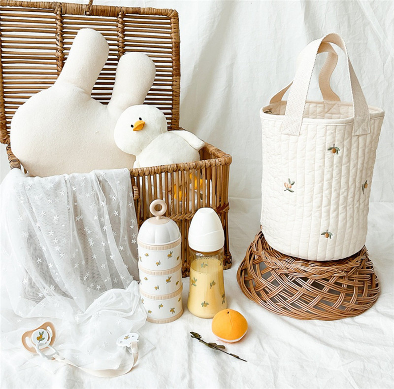 22新款妈咪包刺绣ins韩国婴儿推车收纳挂包奶瓶尿布包手提水桶包