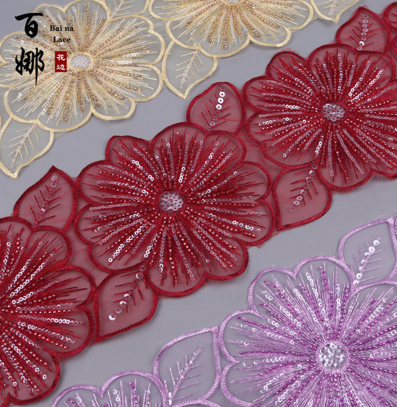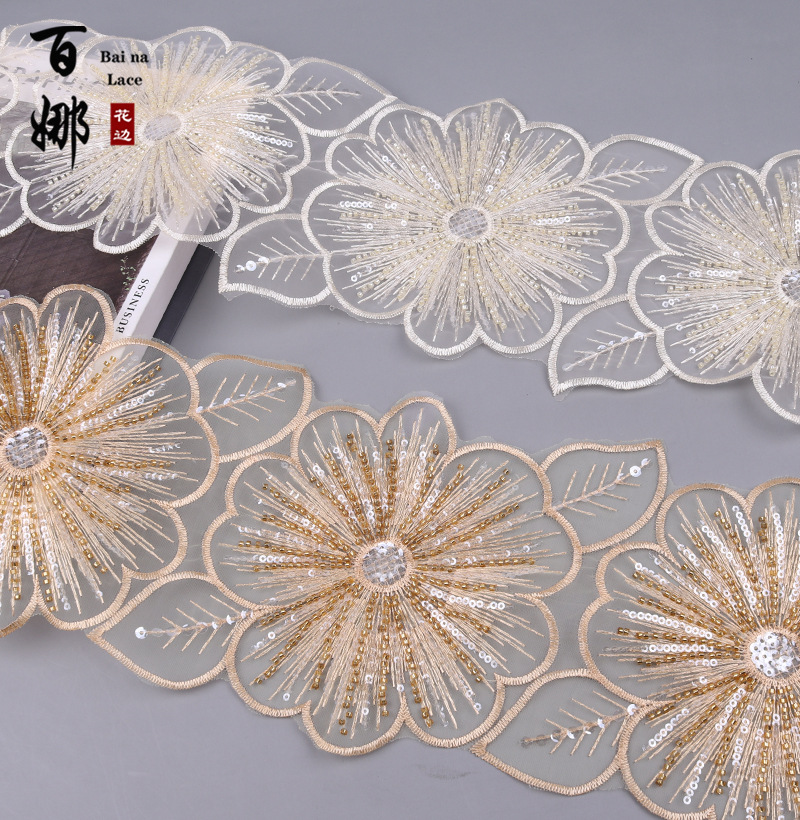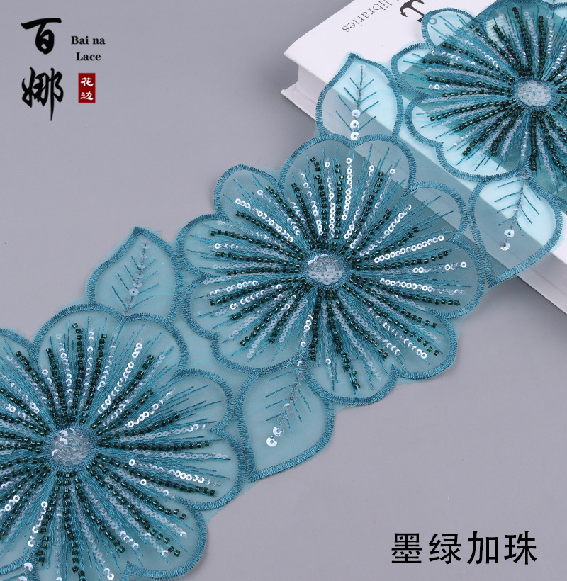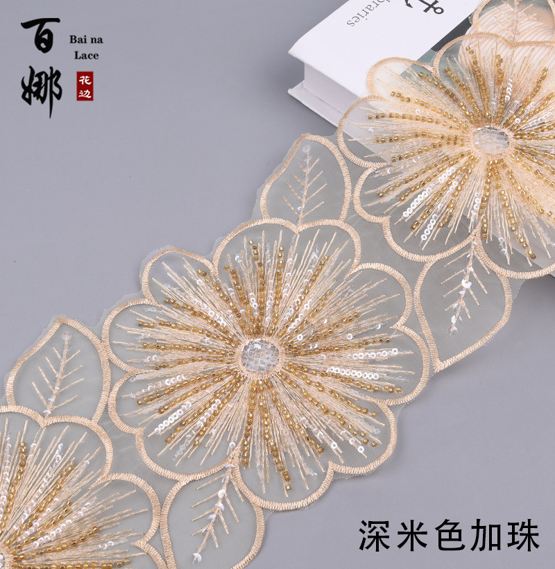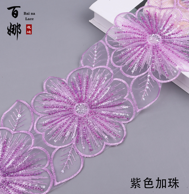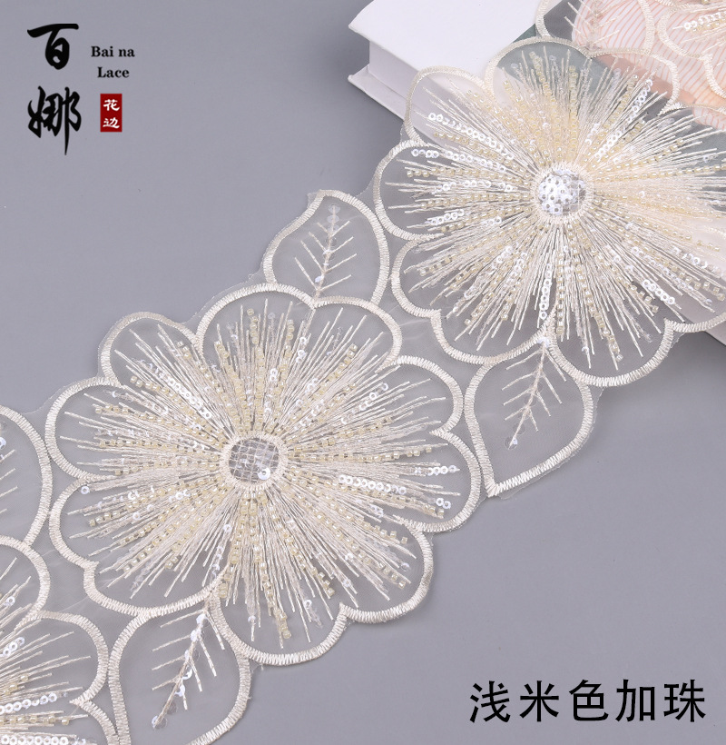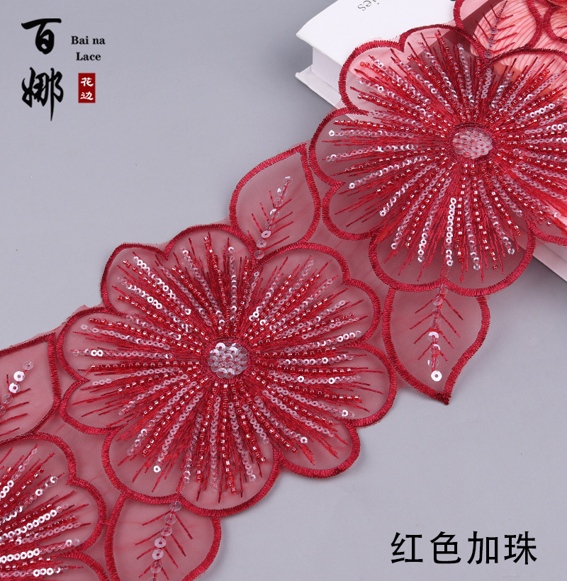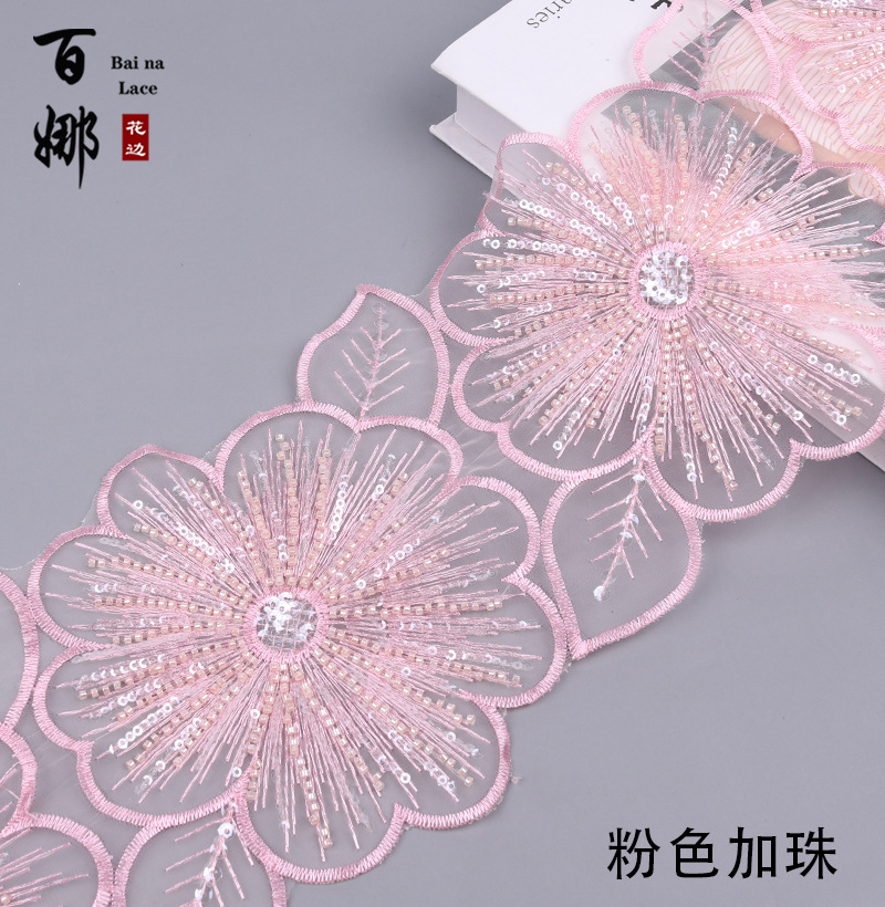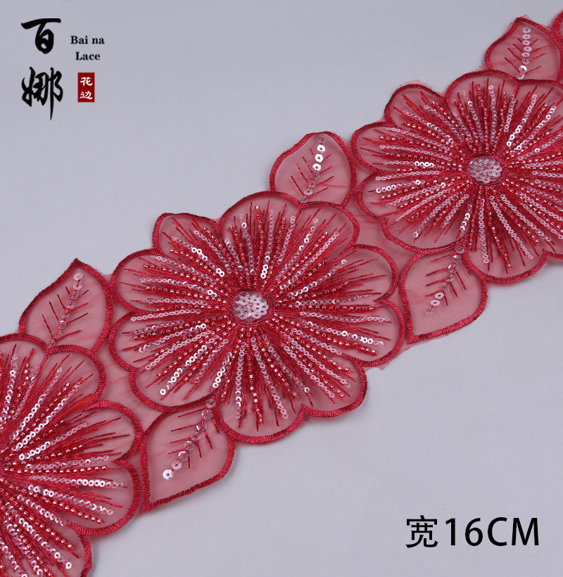 百娜16CM花朵刺绣网纱条码DIY汉服工艺品配件头饰欧根纱辅料花边