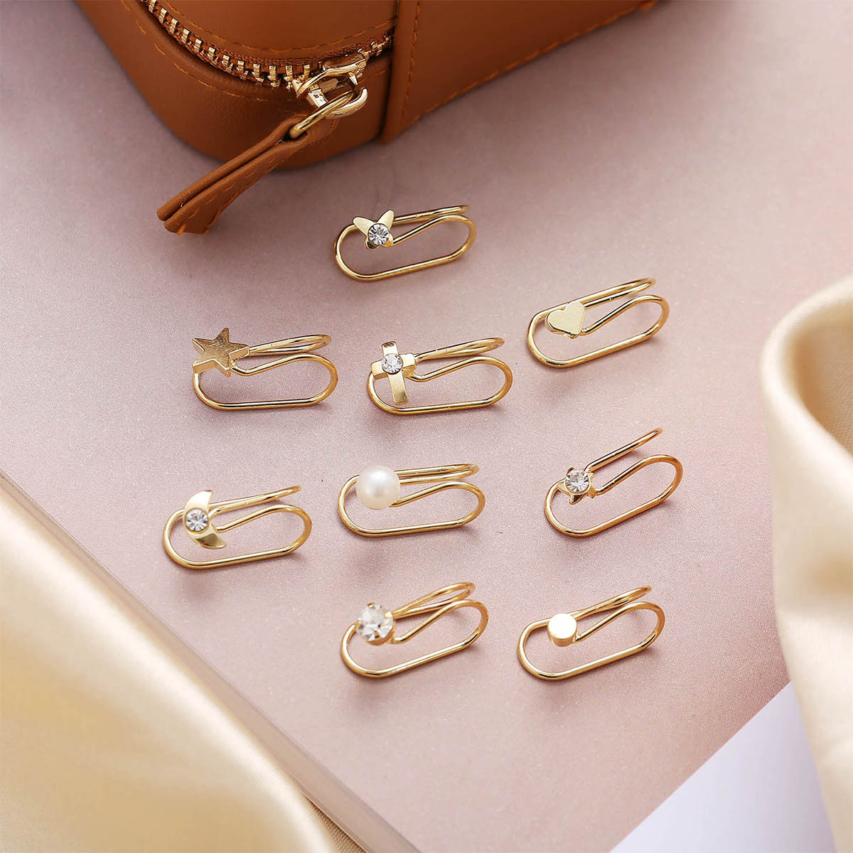 韩之尚跨境耳夹套装5件套 创意个性双C软骨U形双层无耳洞耳钉