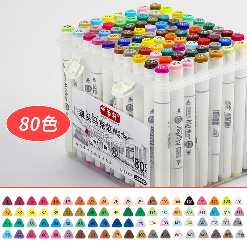听雨轩双头马克笔酒精油性80色60色48色30色24色18色动漫设计套装
