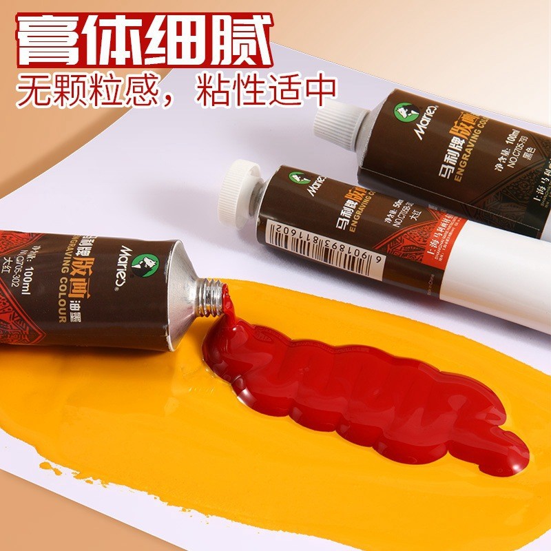 马利可水洗版画油墨100ML装油性红黄蓝绿白黑色50ml水性油墨颜料