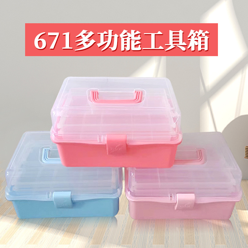 勃兰特加厚三层工具箱美术画画收纳盒环保实色半透明大号工具箱