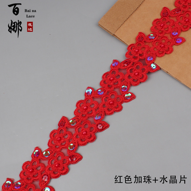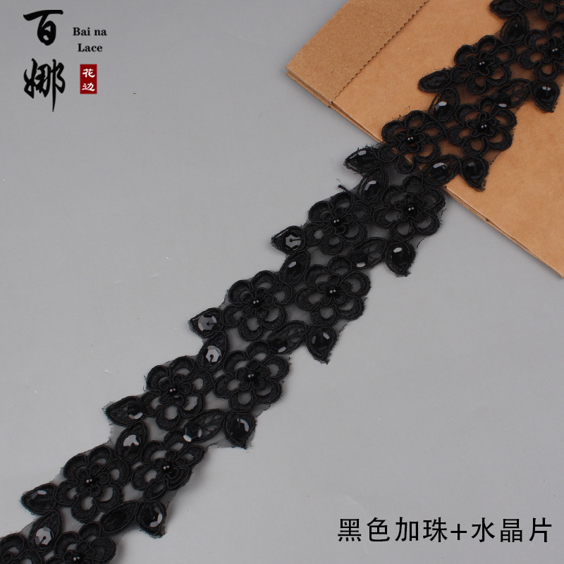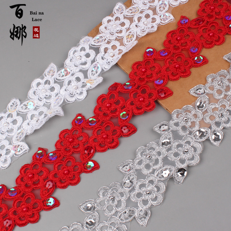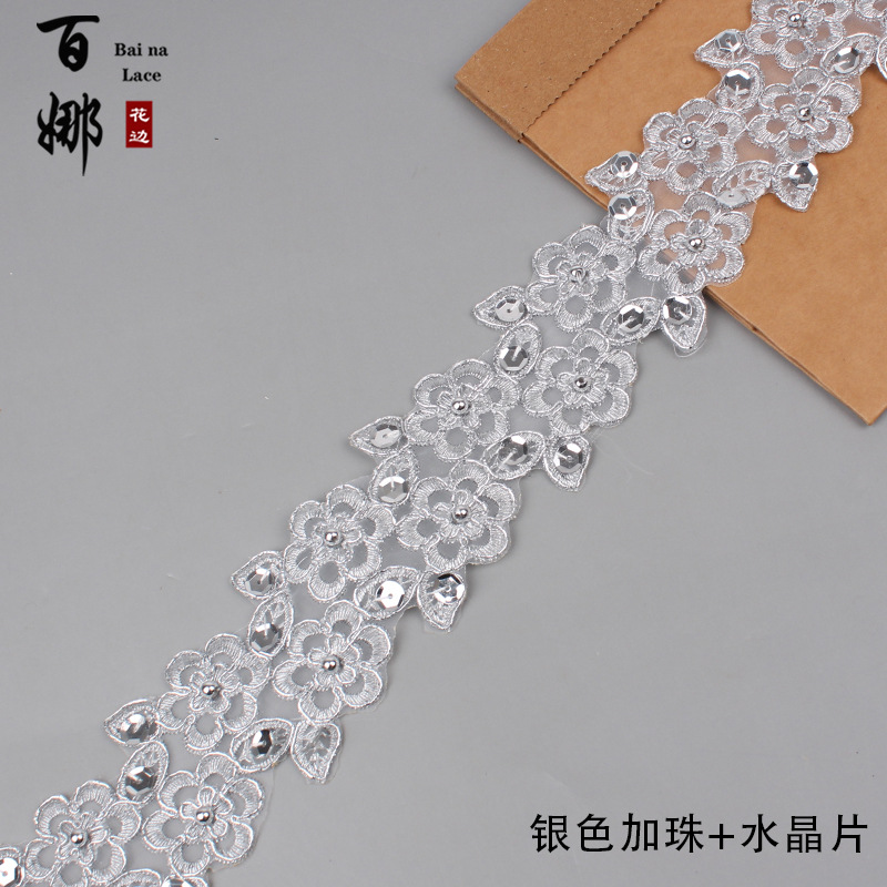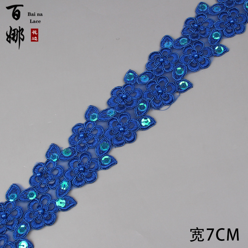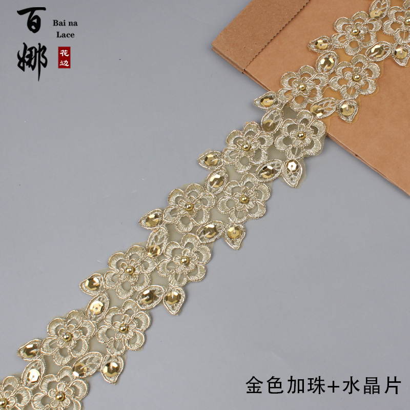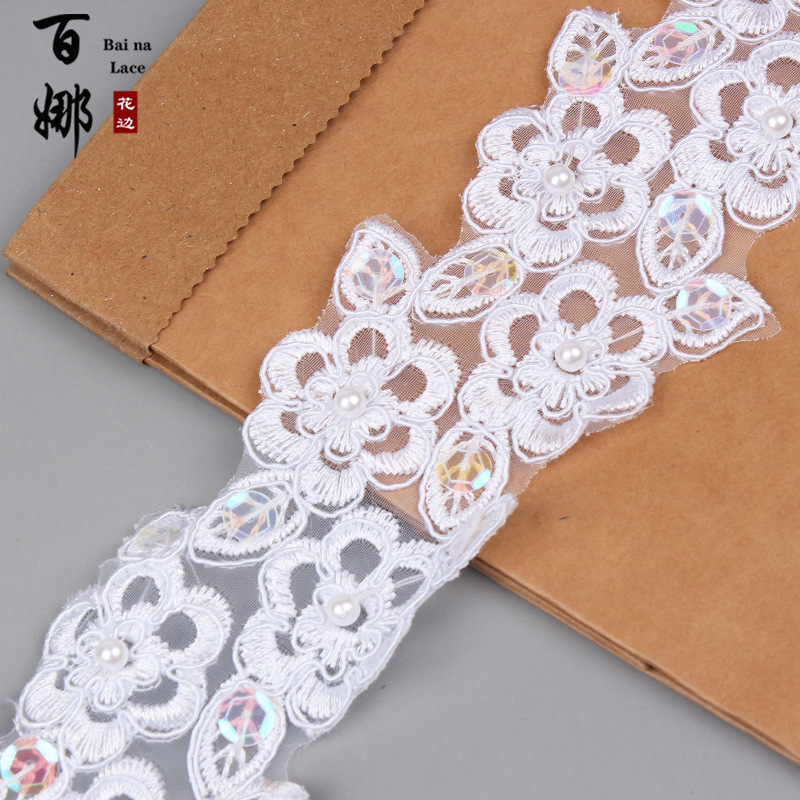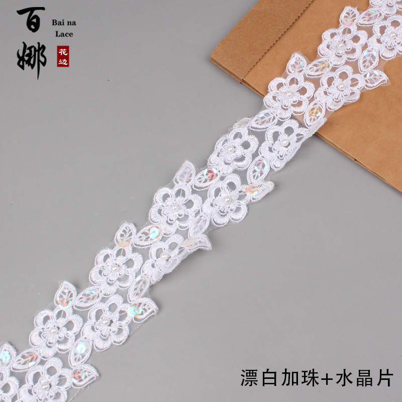 百娜花边7.0公分软网刺绣珠绣蕾丝花边婚纱礼服头纱童装头饰 珠绣