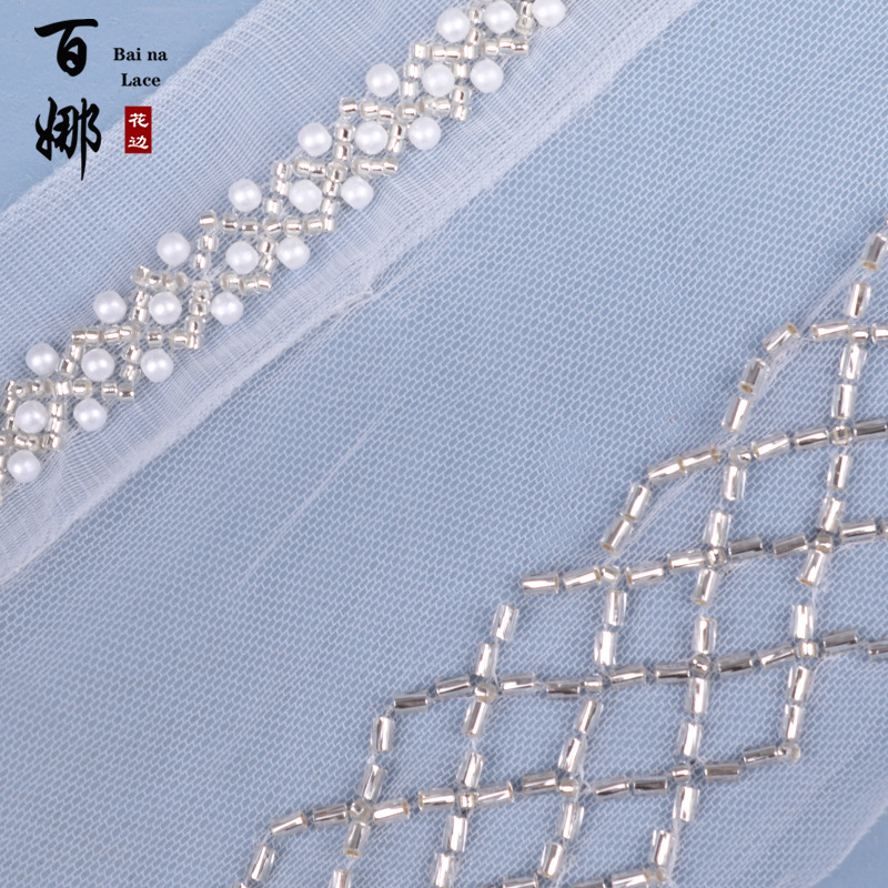 Baina Pearl Embroidery Lace Mesh Woven Lace Ribbon Lace Beads Clothing Accessories Bag Accessories Wholesale