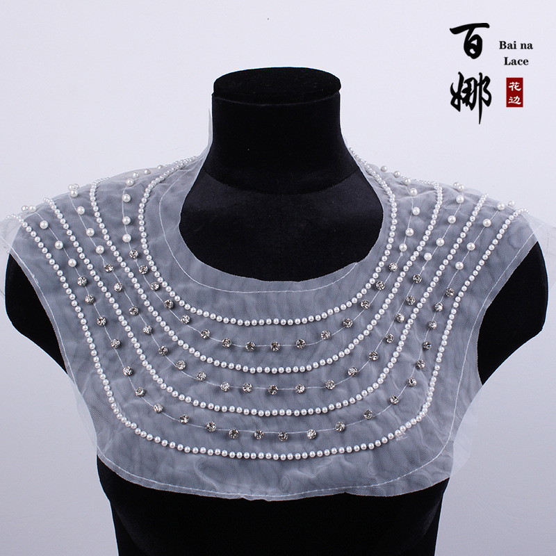 百娜花边韩版珍珠水钻衣领 复古时尚娃娃衣领项链穿珠DIY辅料批发