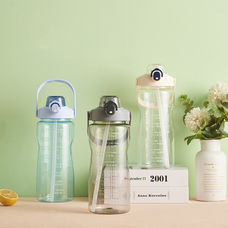 吨吨杯塑料运动水杯超大容量渐变ing风刻度弹盖杯水硅胶吸管杯现