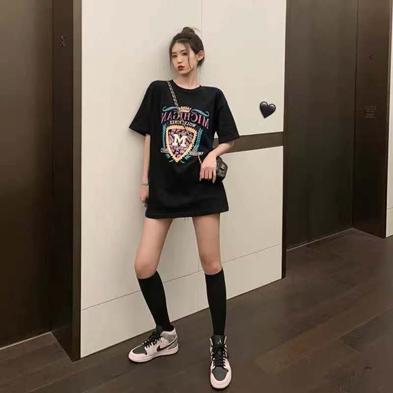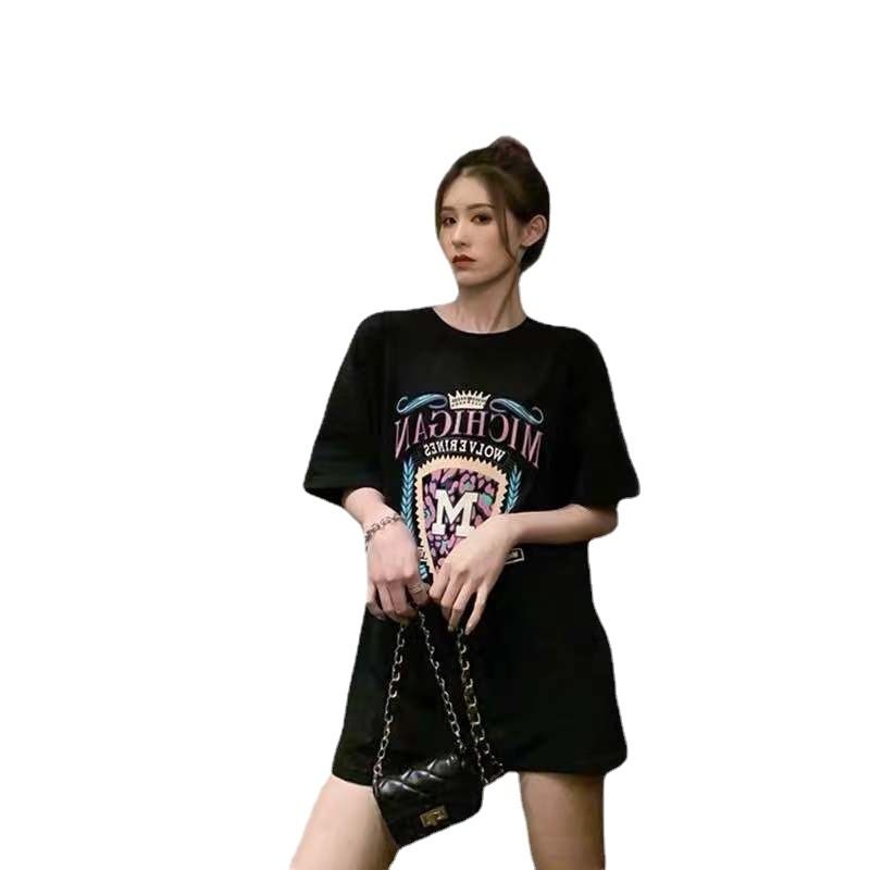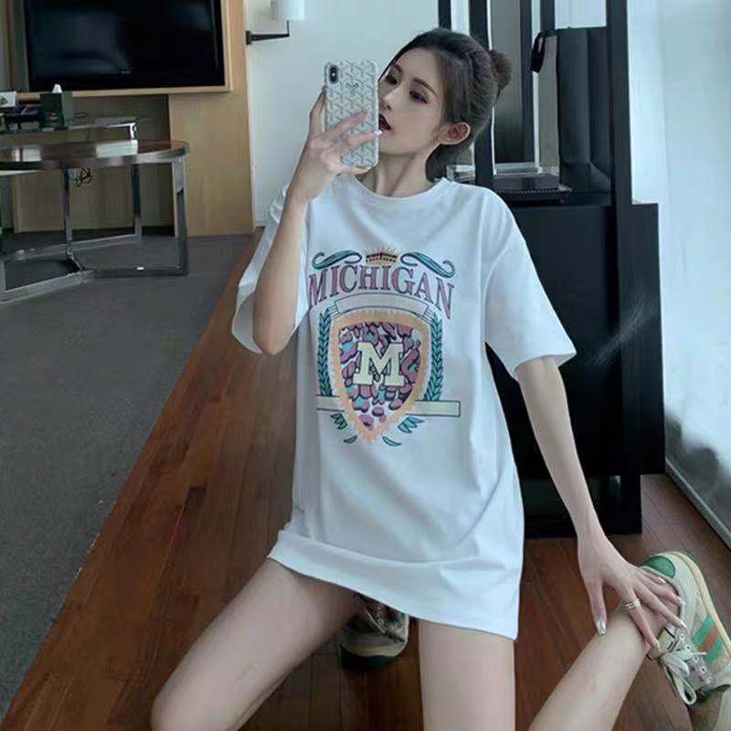 欧洲站大版短袖t恤女2023年新款宽松中长款纯棉大体桖夏潮i