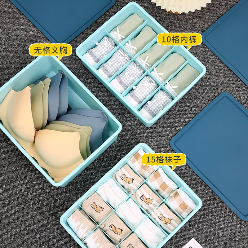 塑料内衣收纳盒 家用抽屉式三合一文胸内裤分格整理盒 袜子收纳盒