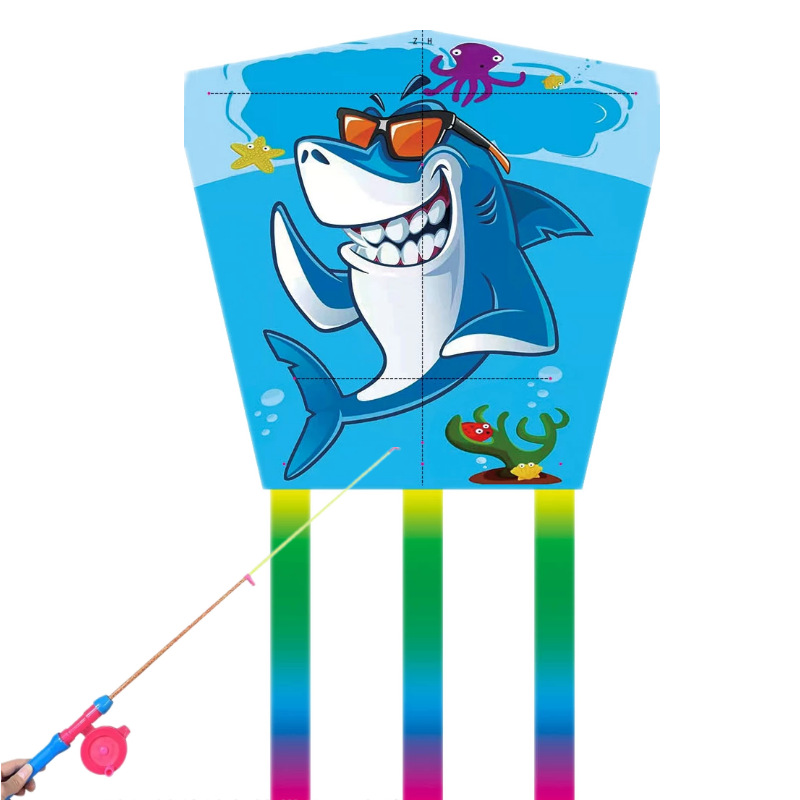 新款儿童手持鱼竿风筝迷你卡通塑料风筝网红地摊公园广场批发