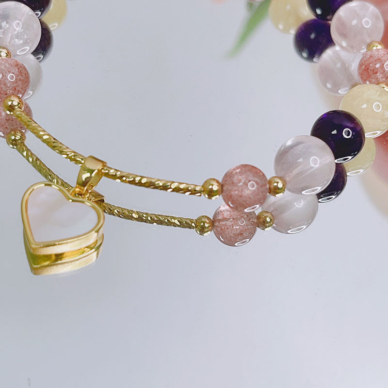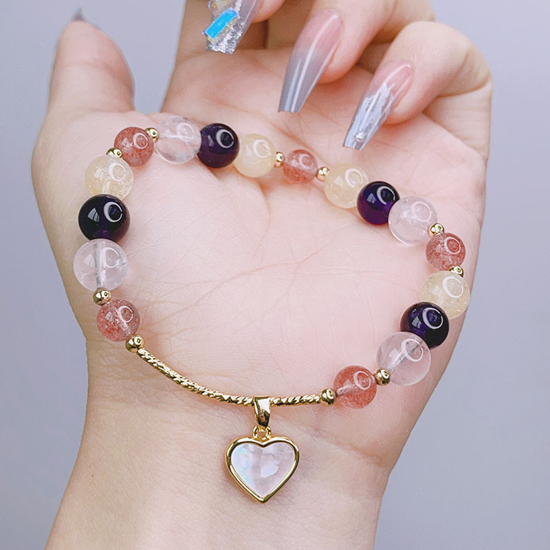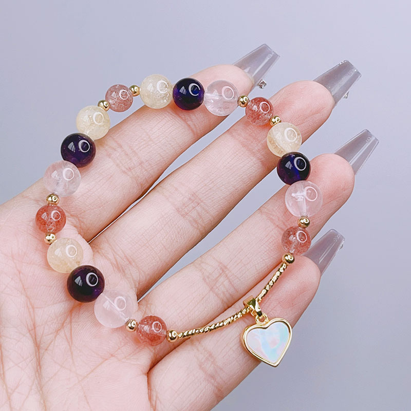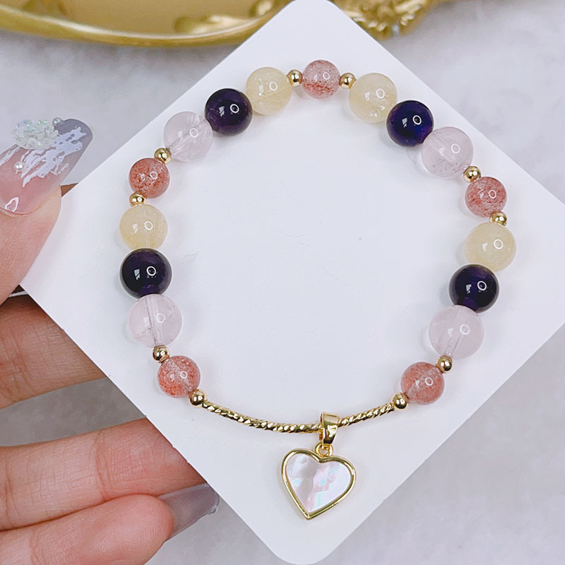 水晶多宝手链女贝壳爱心紫晶粉晶草莓晶串珠手串简约春夏新款手饰