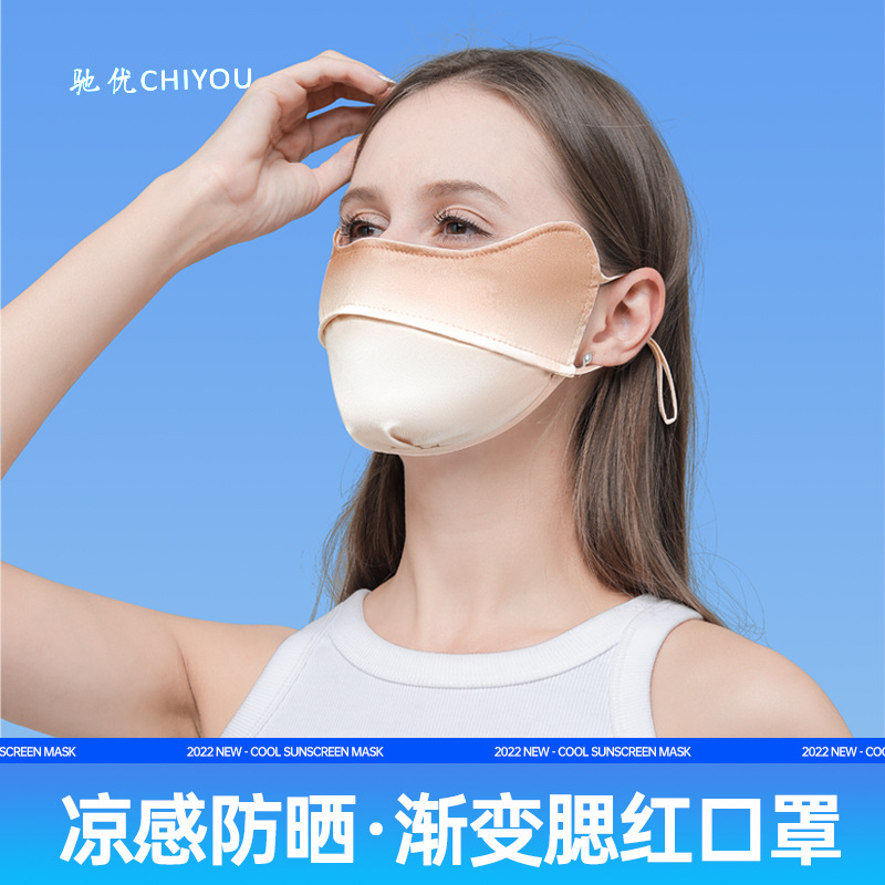 腮红渐变护眼角防晒口罩女面罩夏季冰丝遮阳防紫外线防晒面罩全脸
