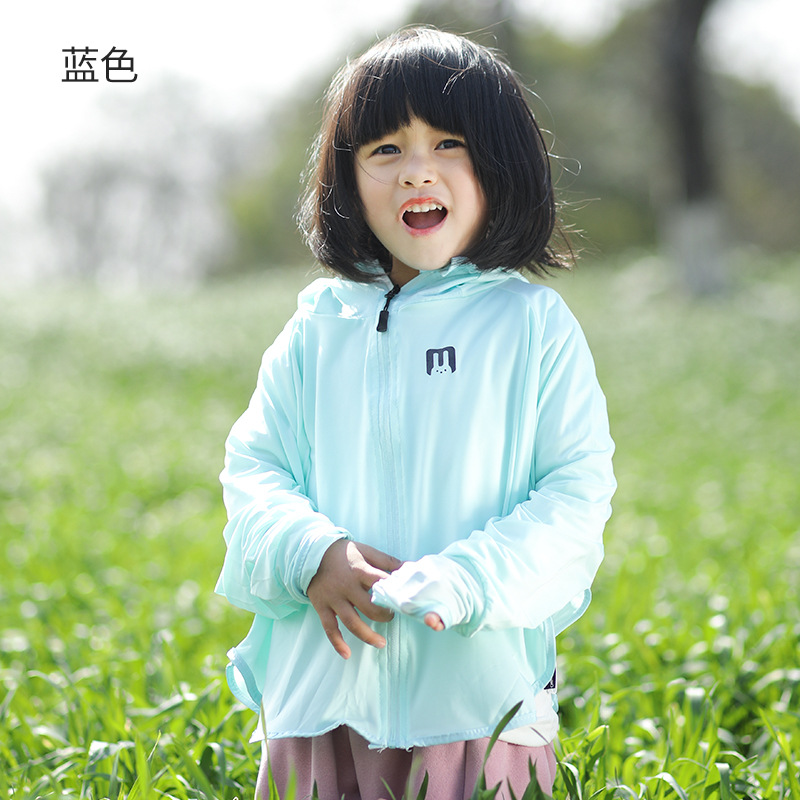 冰丝拼色防晒服轻薄长袖儿童防晒衫遮阳清凉透气兔子防晒衣女士夏