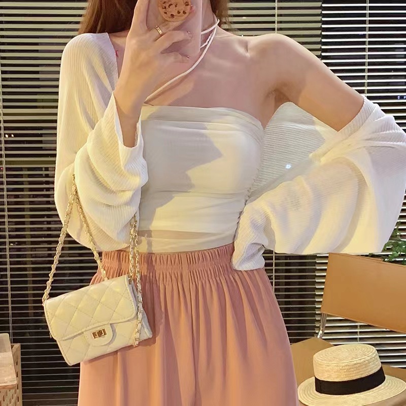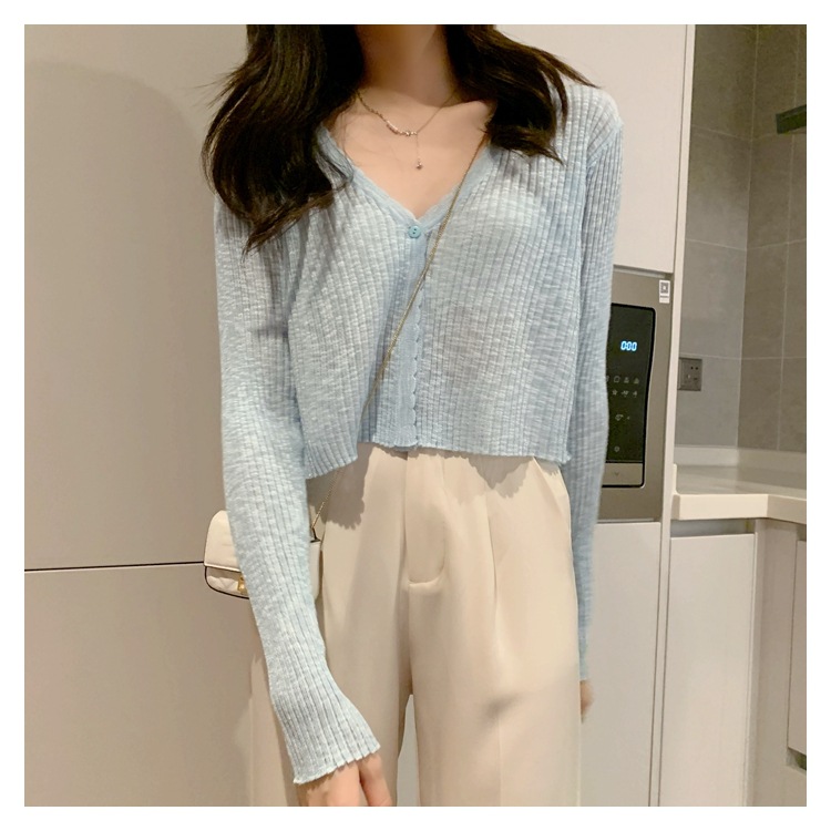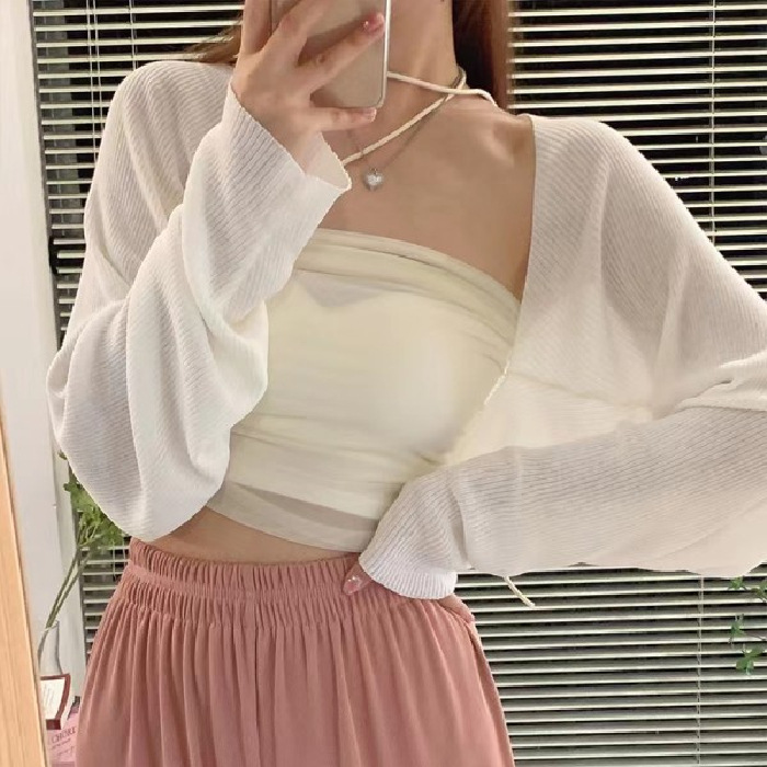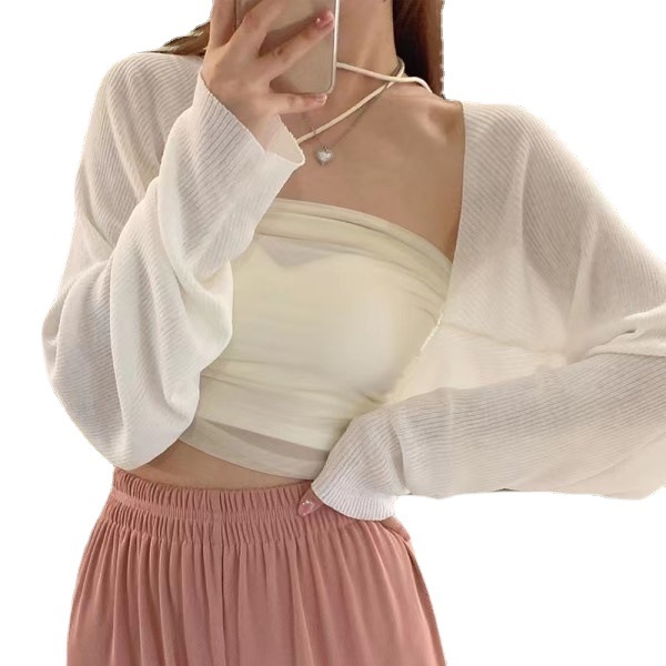 针织防晒开衫薄款女夏季2022冰丝短款外搭上衣长袖罩衫小坎肩外套