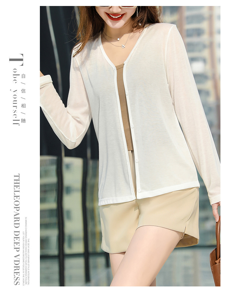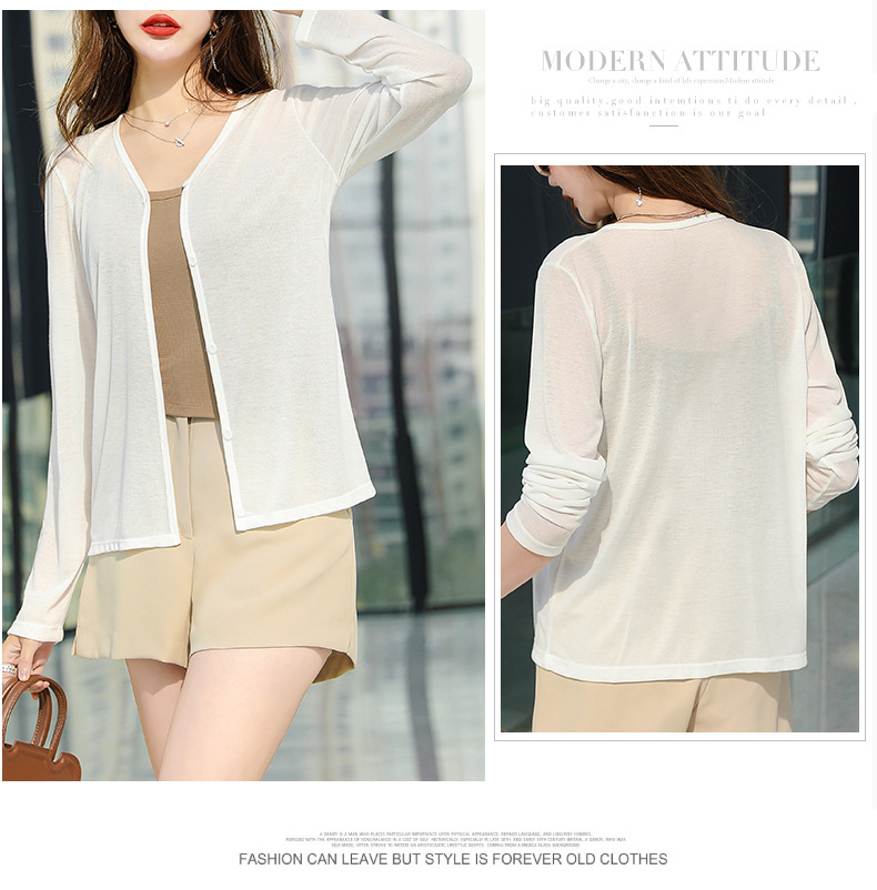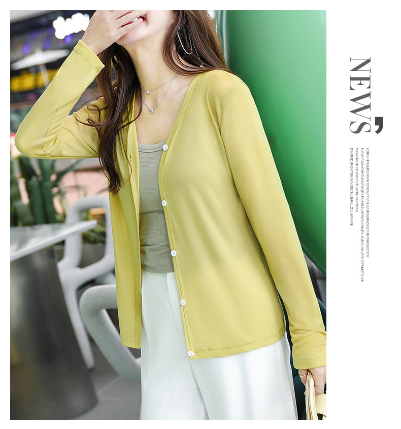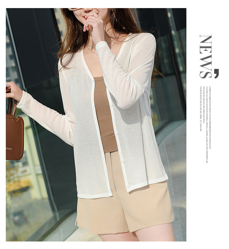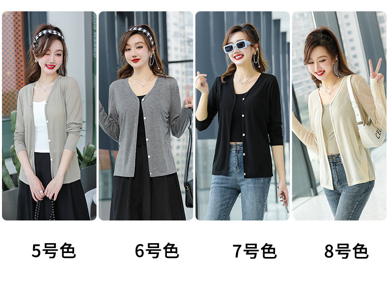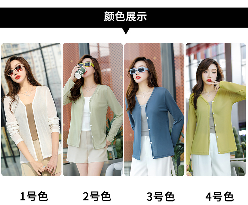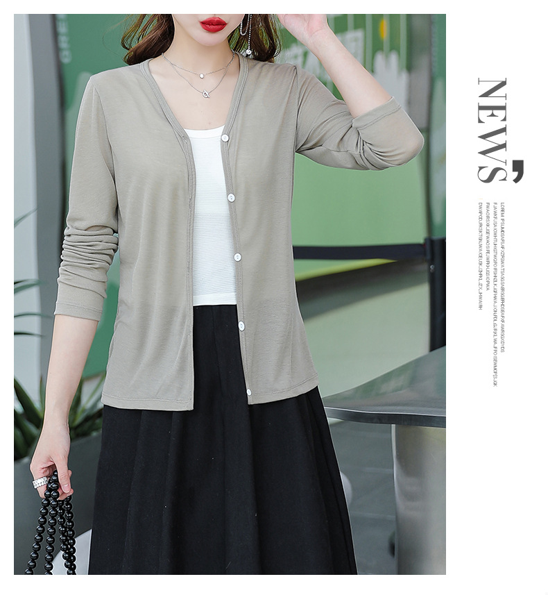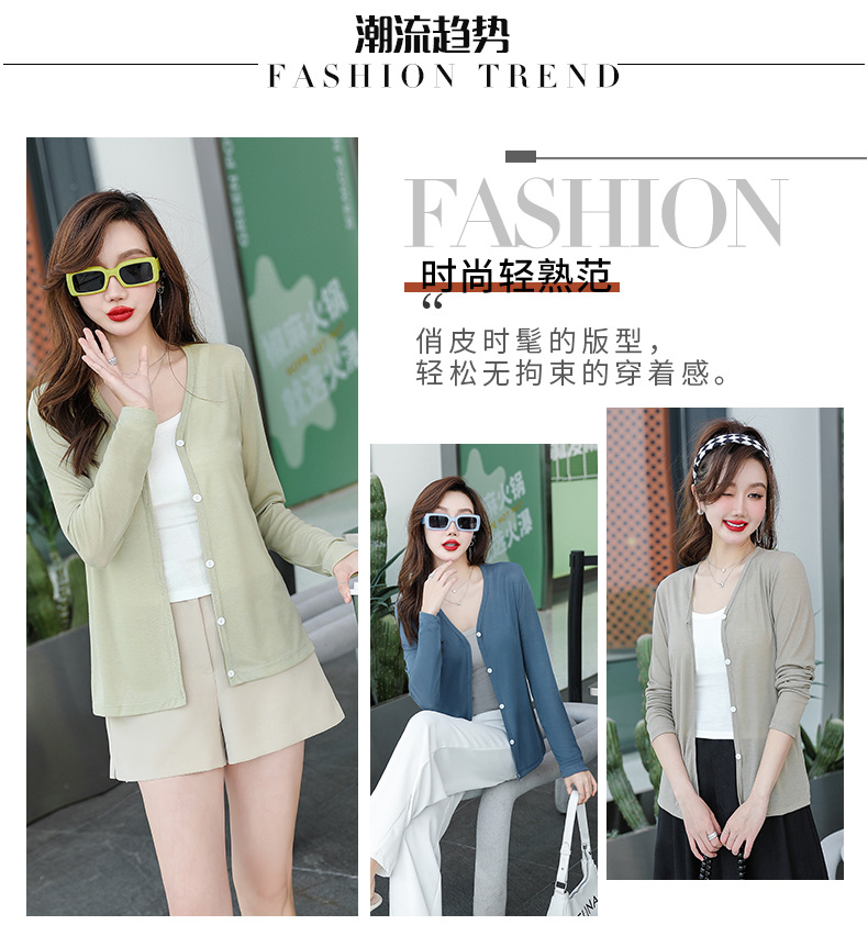 春夏新款天丝薄款防晒衣小众设计V领针织开衫上衣女士宽松外套