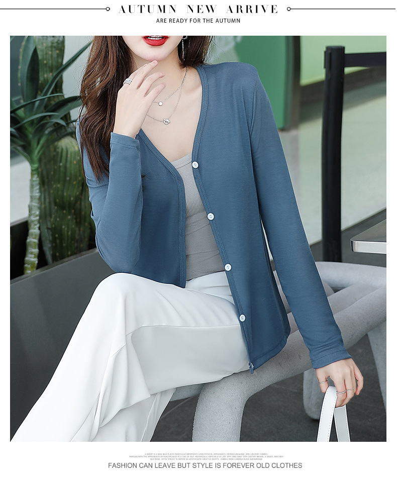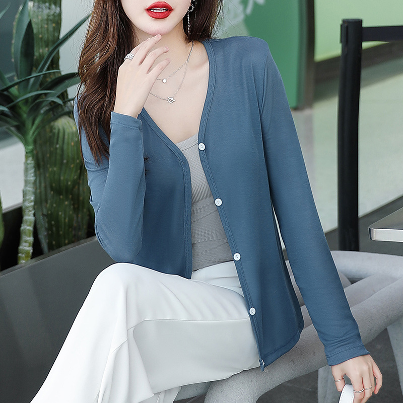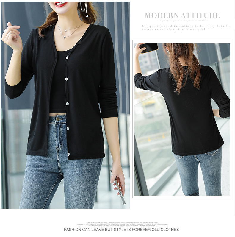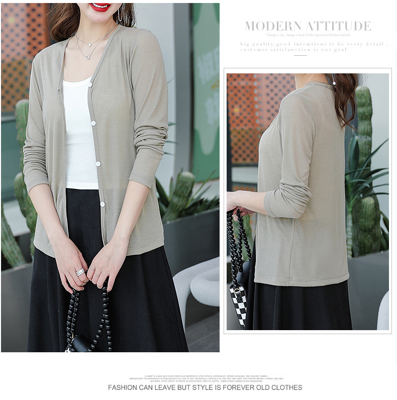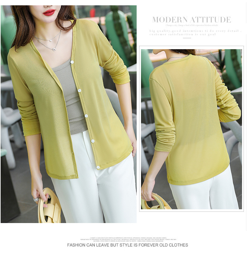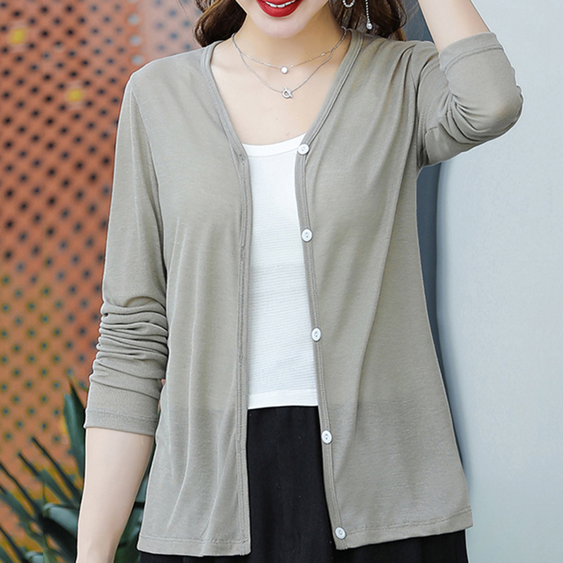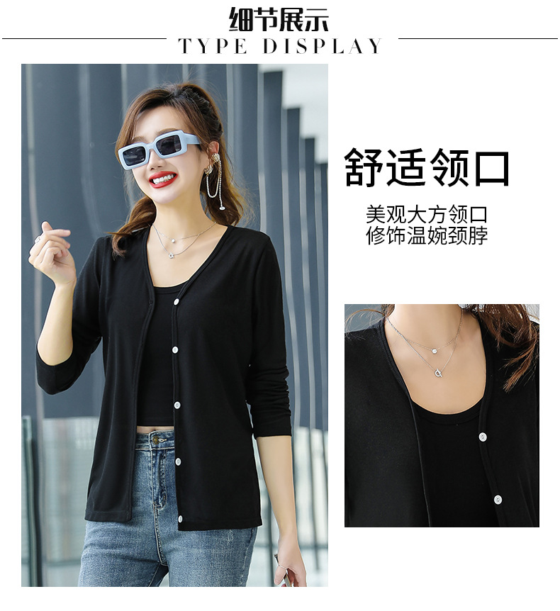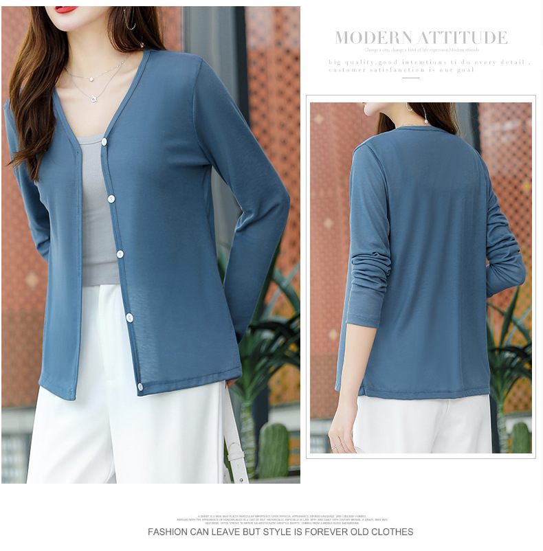 春夏新款天丝薄款防晒衣小众设计V领针织开衫上衣女士宽松外套