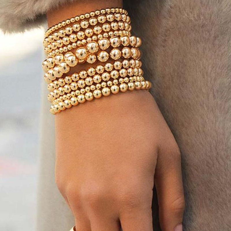 跨境热卖 欧美新款百搭金色圆珠手链 沙滩风几何弹力手链手环女