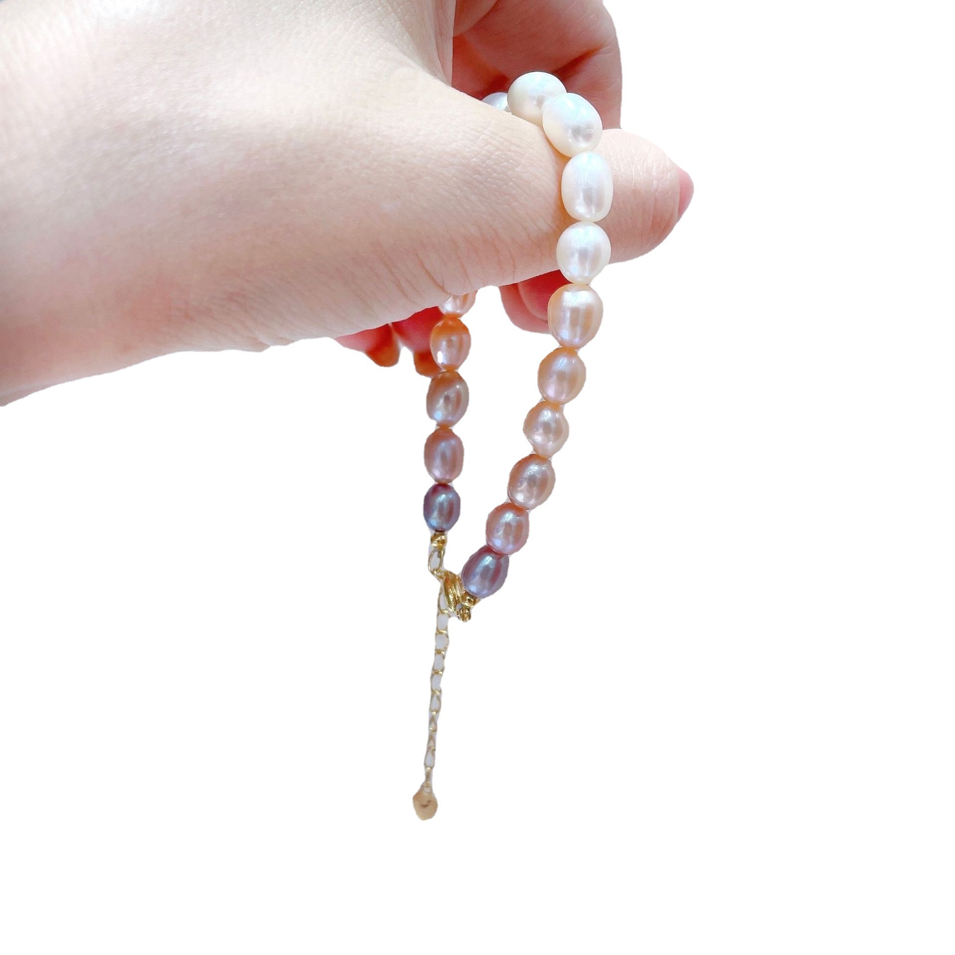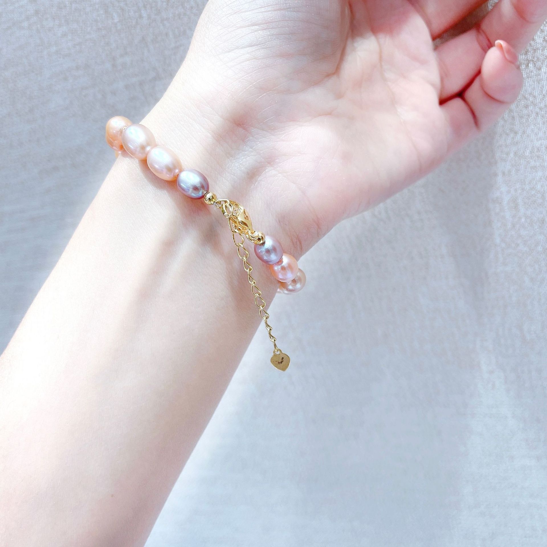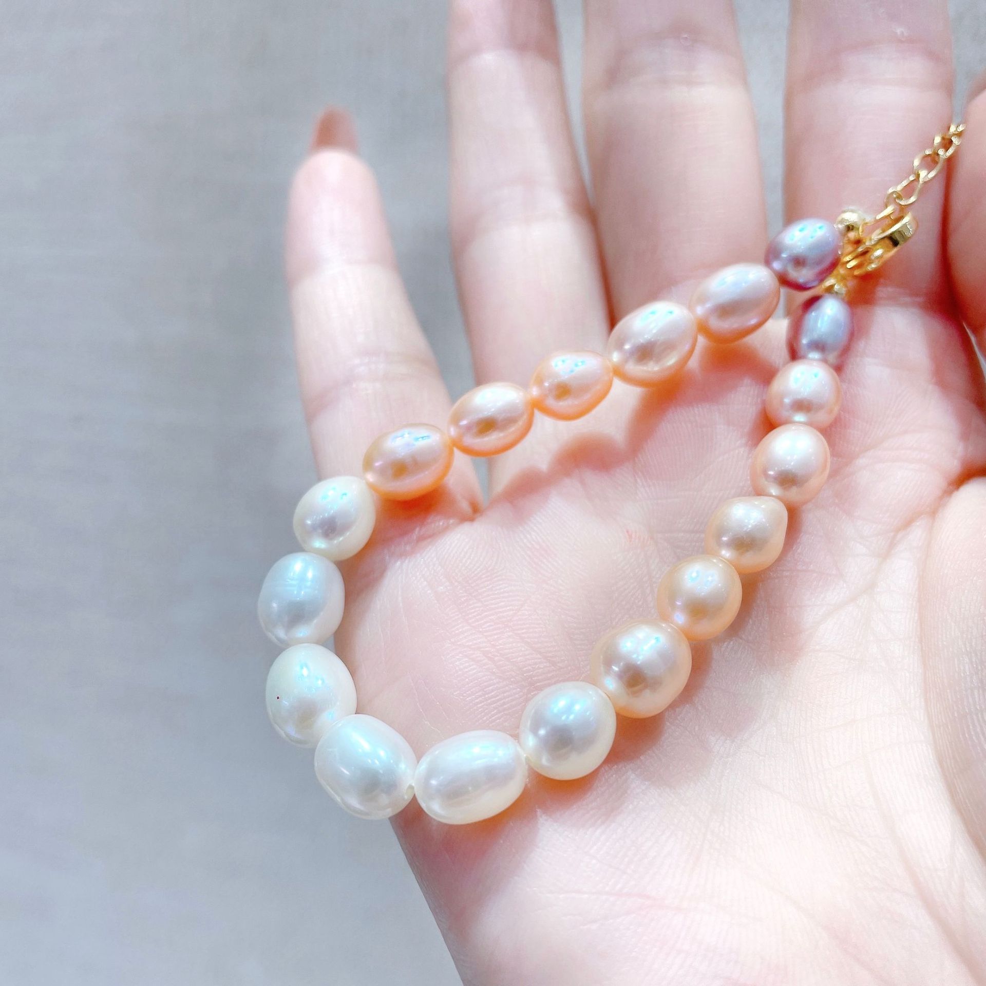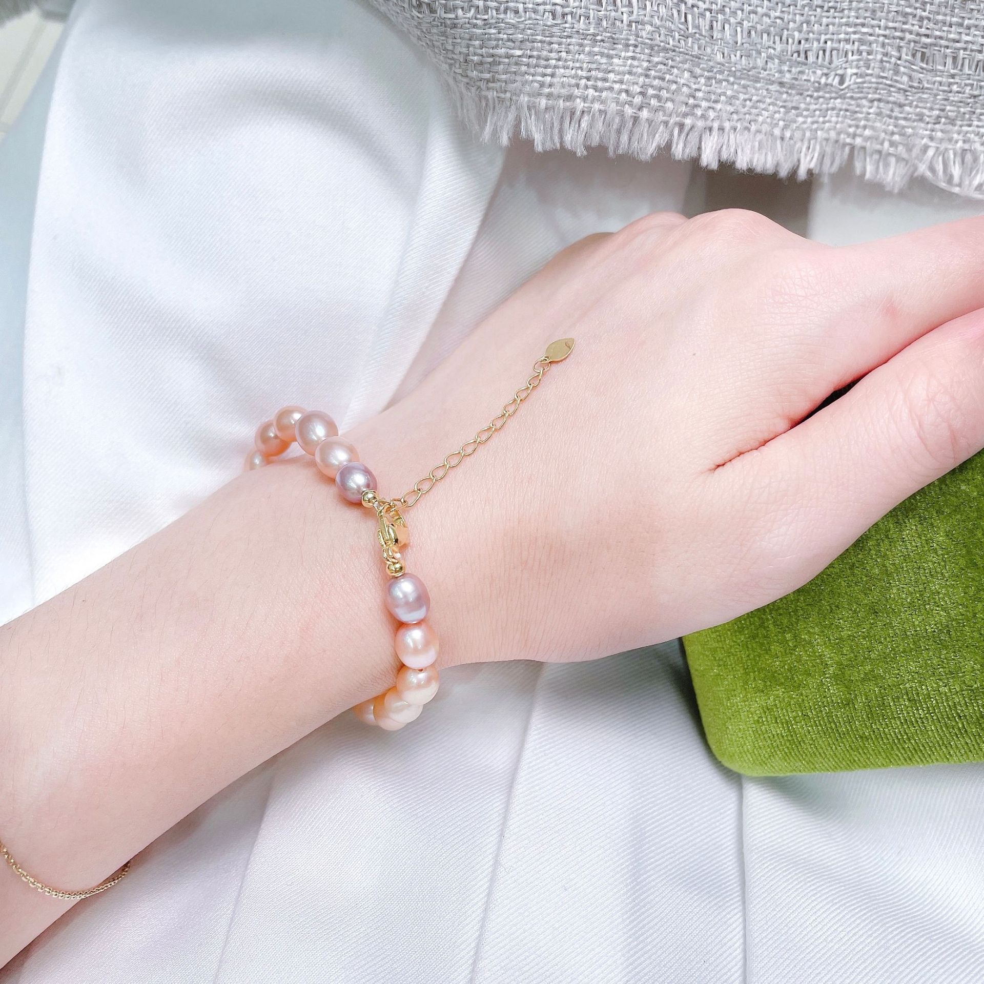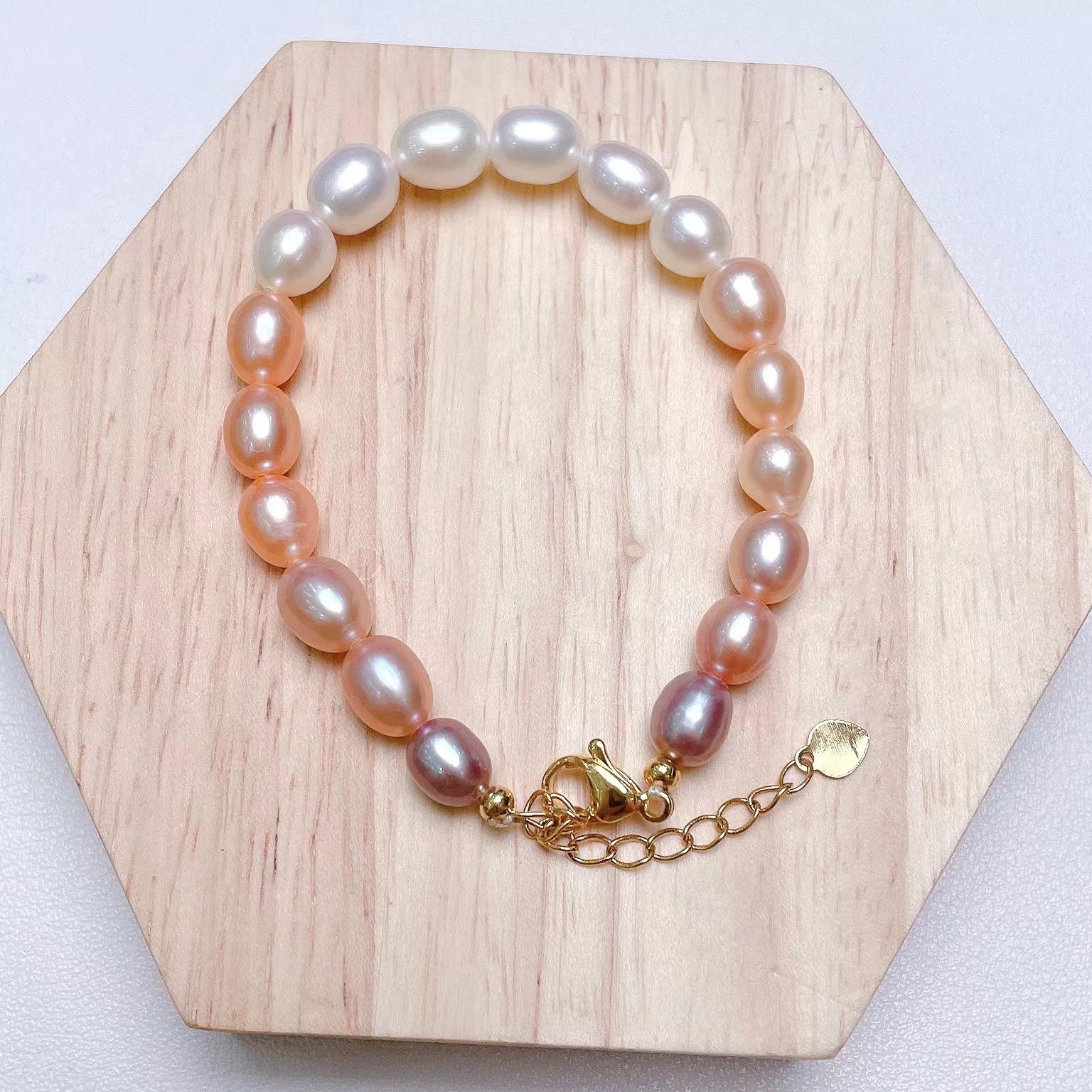 淡水糖果色混彩珍珠6-7mm 14K包金手链简约珍珠手串女饰品批发