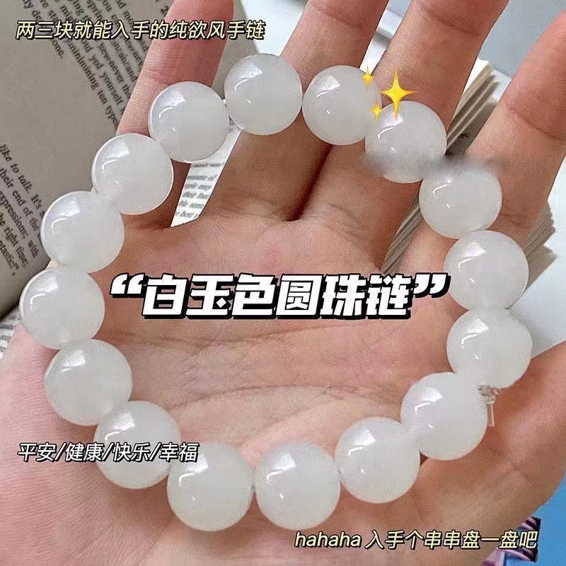 冰透白玉仿菩提手串绕指柔渐变色粉色学生版盘玩圆珠手链手串情侣