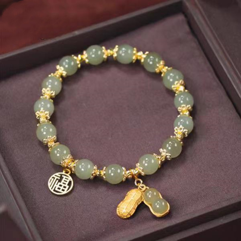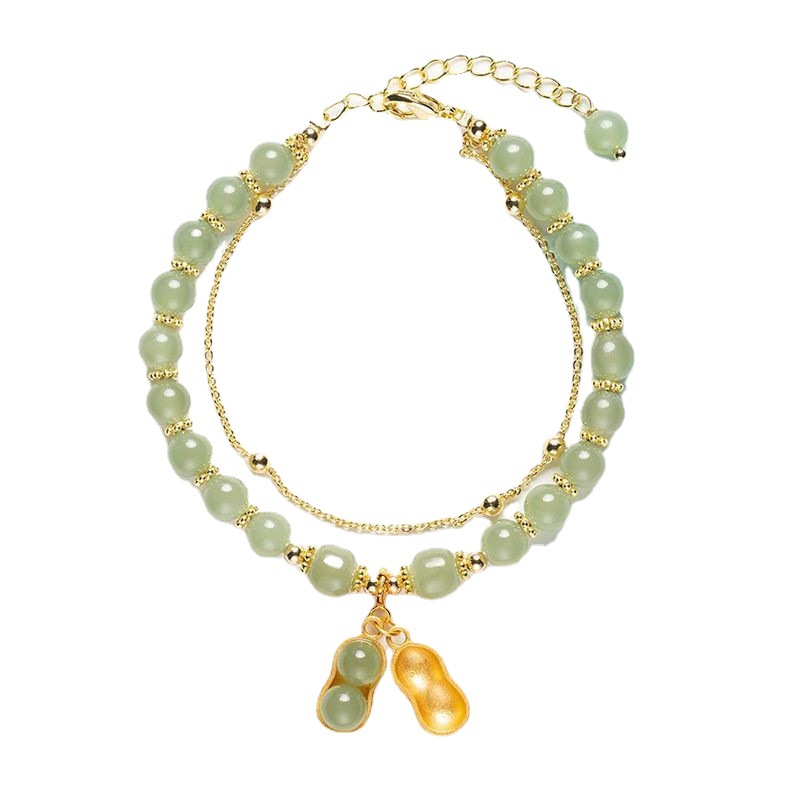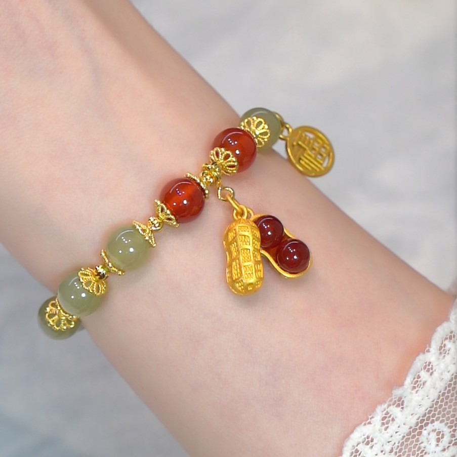 好事花生相思红豆设计感复古双层叠戴手串仿和田钰花生手链女饰品