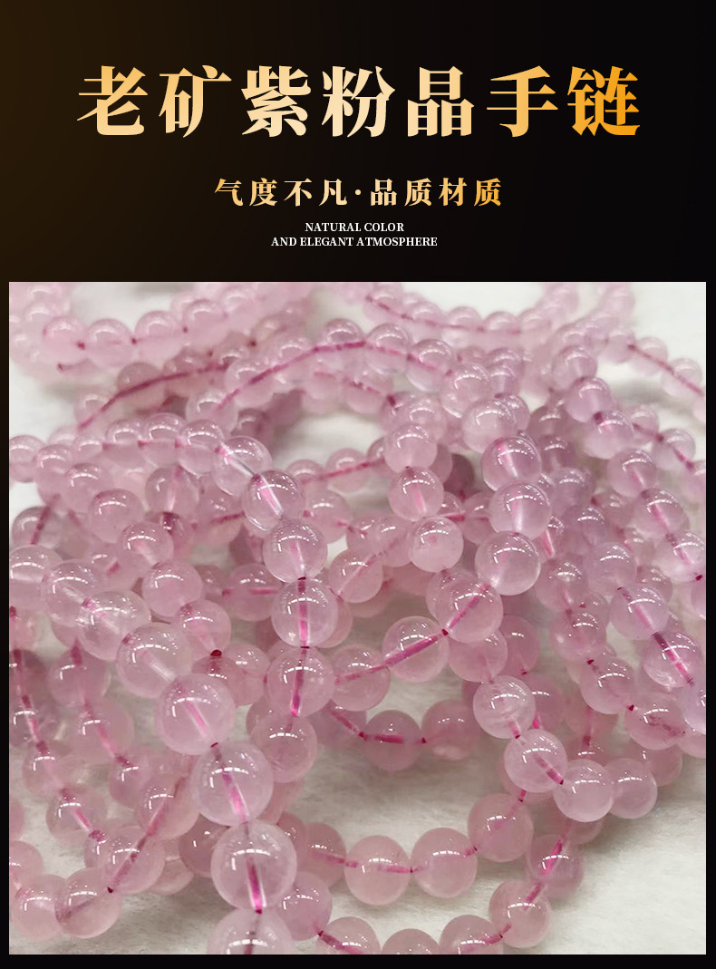 新款马达加斯加粉晶手链老矿粉色水晶手饰韩式小清新女式手串