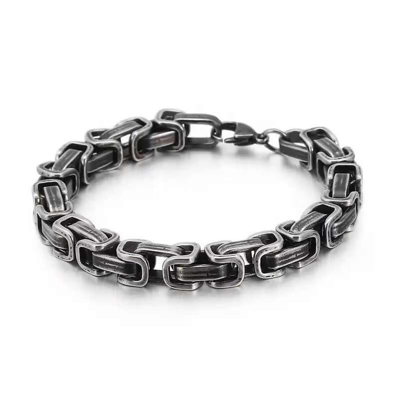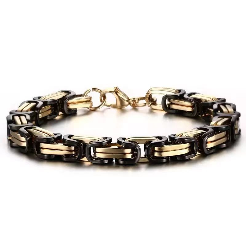 欧美跨境电商时尚潮男钛钢间色帝王链手链双节手链不锈钢方扣手链