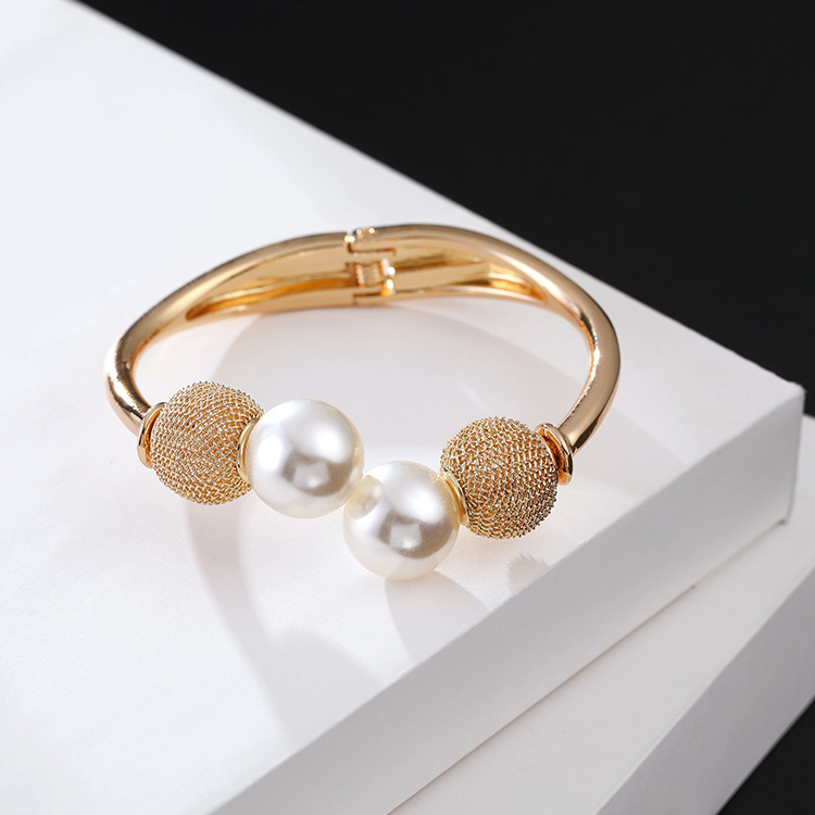 外贸饰品 欧美流行时尚合金首饰双层珍珠手链女不对称半开口手镯
