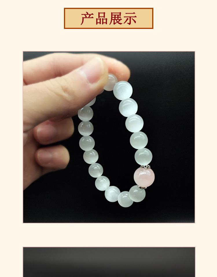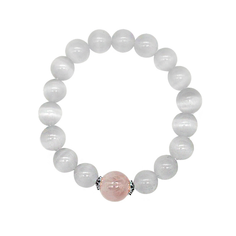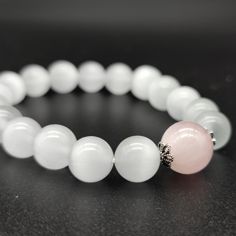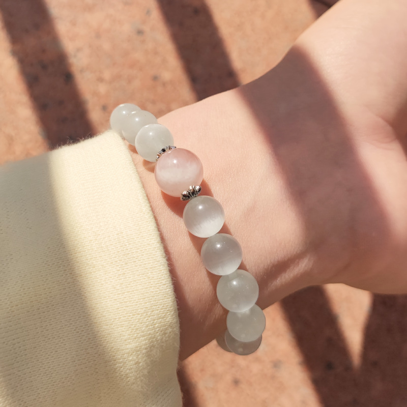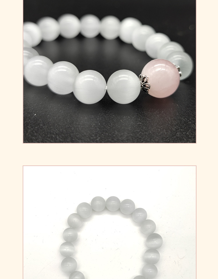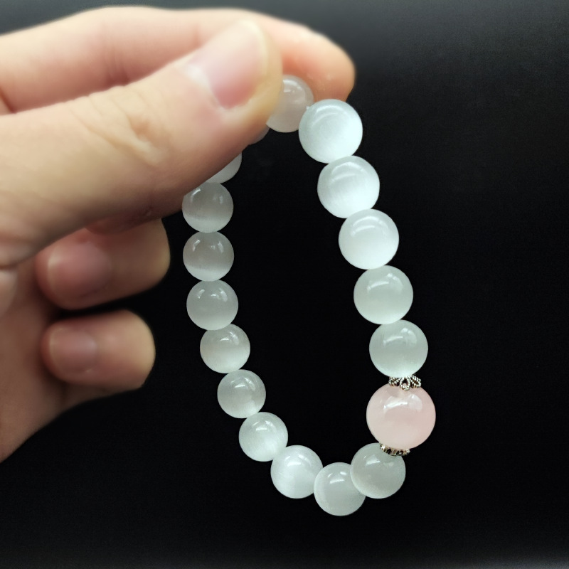 【冰山恋人】天然粉晶手链简约古风守护爱情白猫眼水晶手串S925银