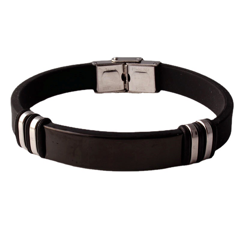 混批时尚欧美镀黑手链 个性钛钢硅胶男士女士手环可定制LOGO
