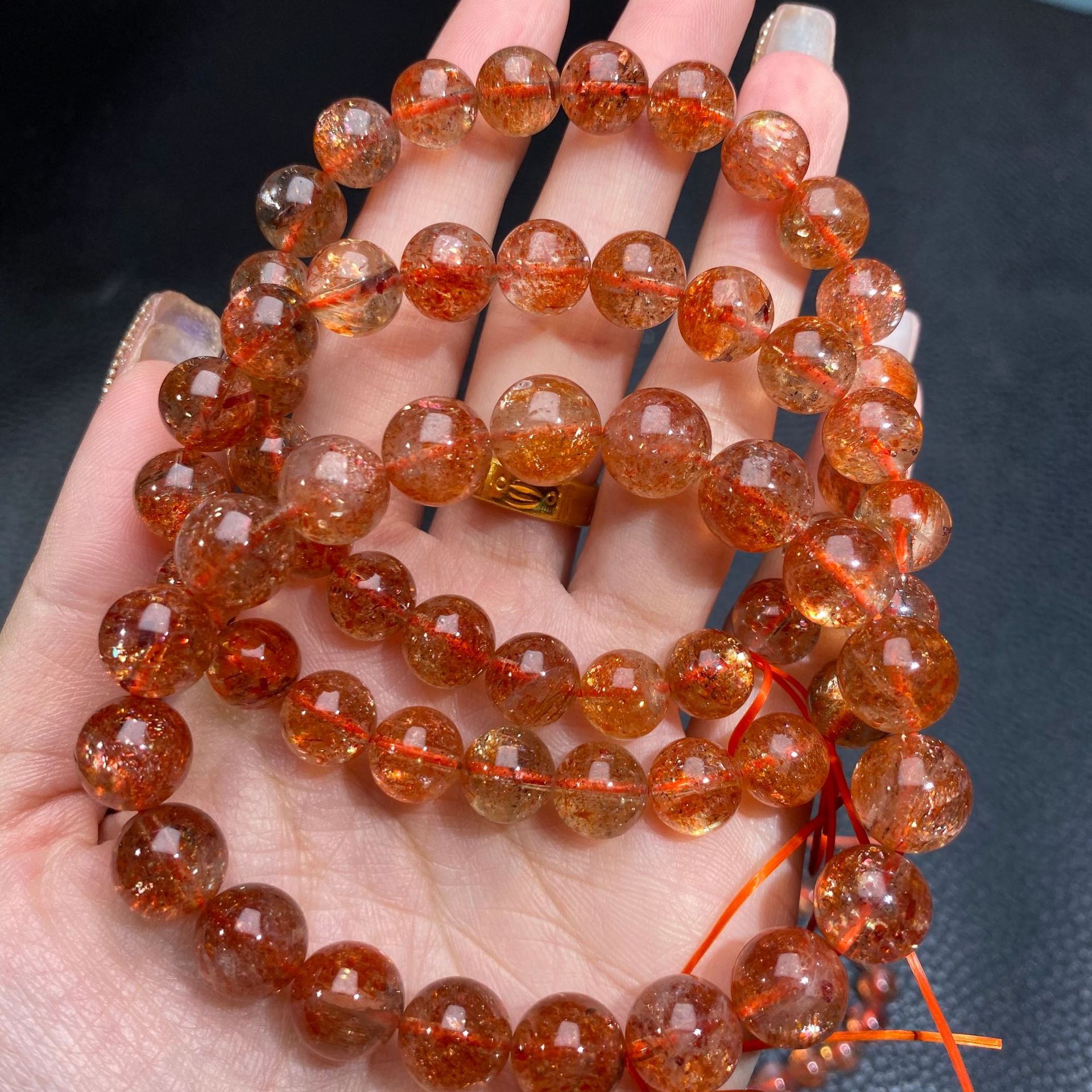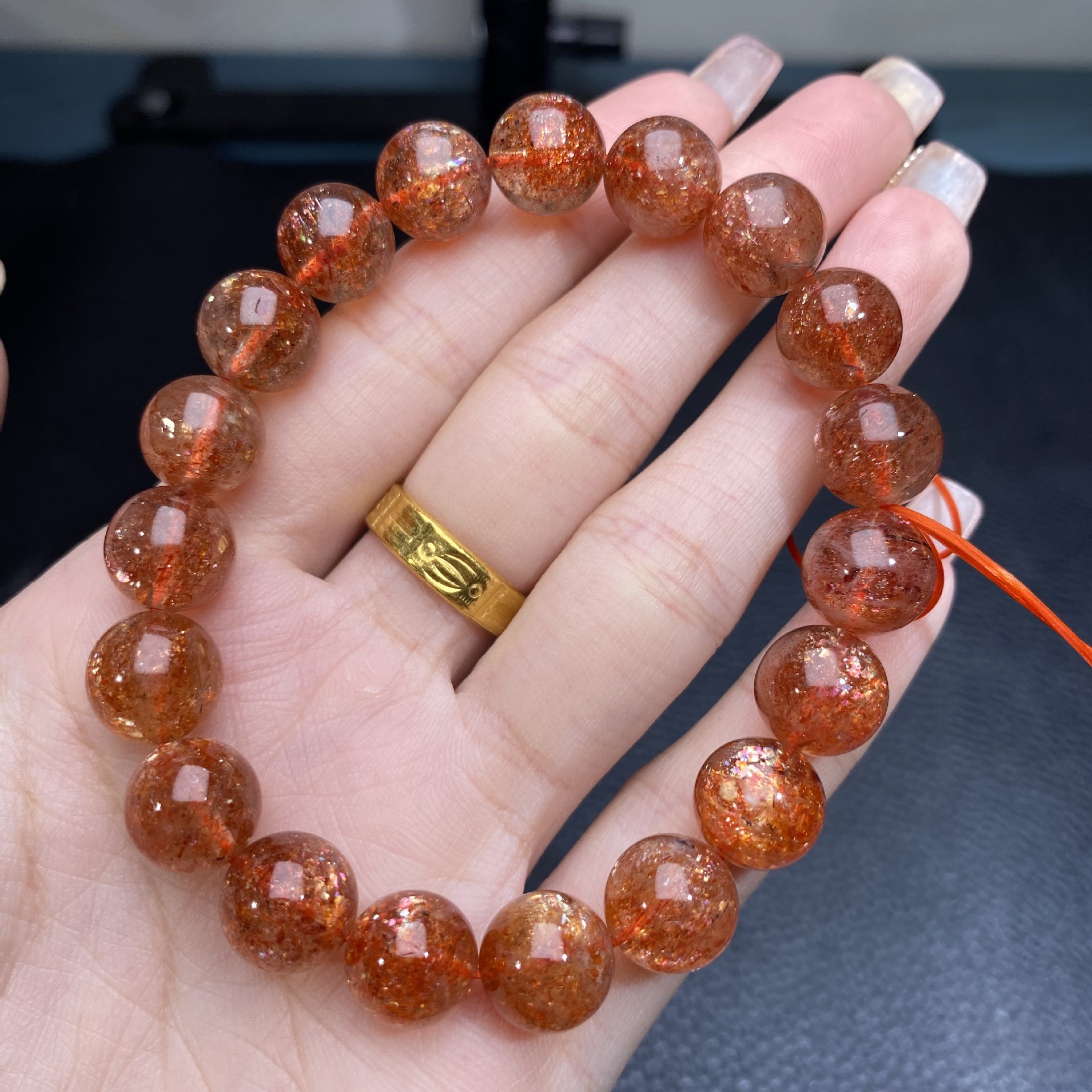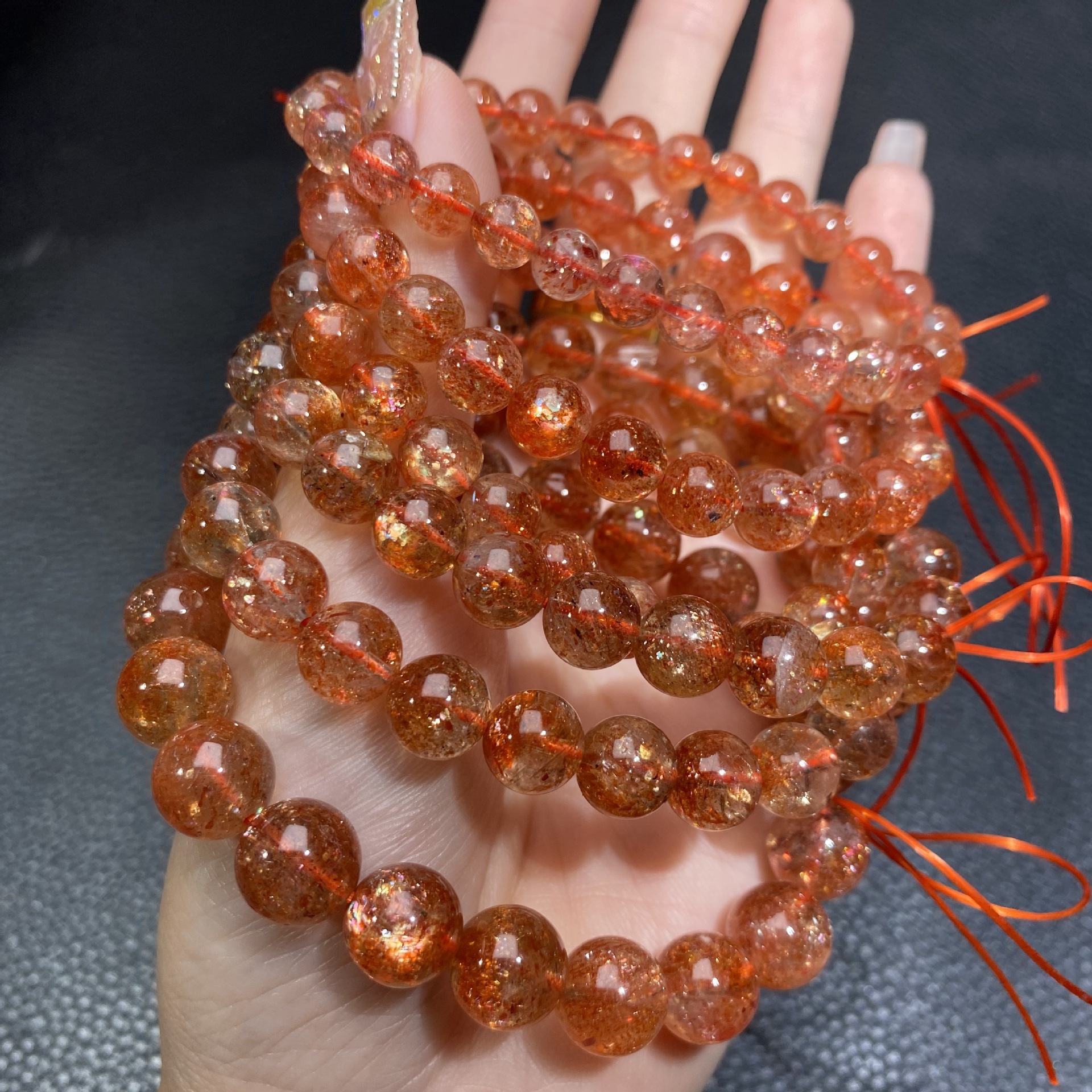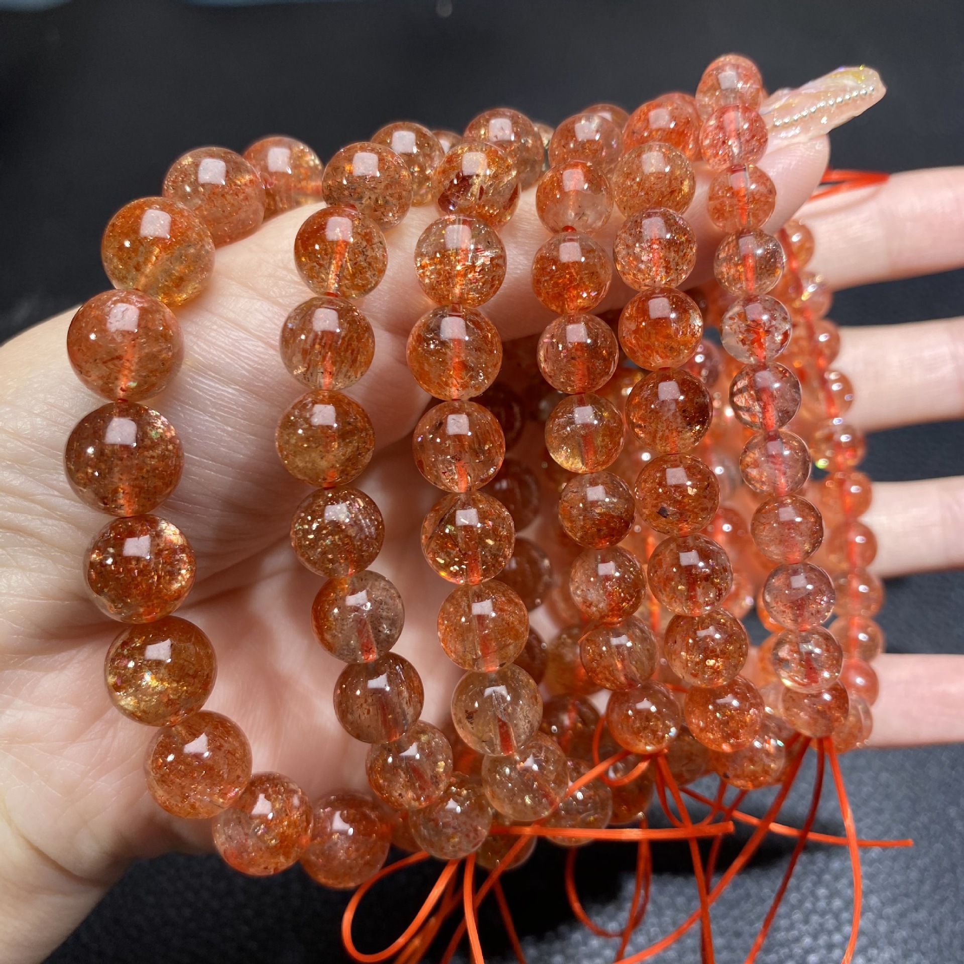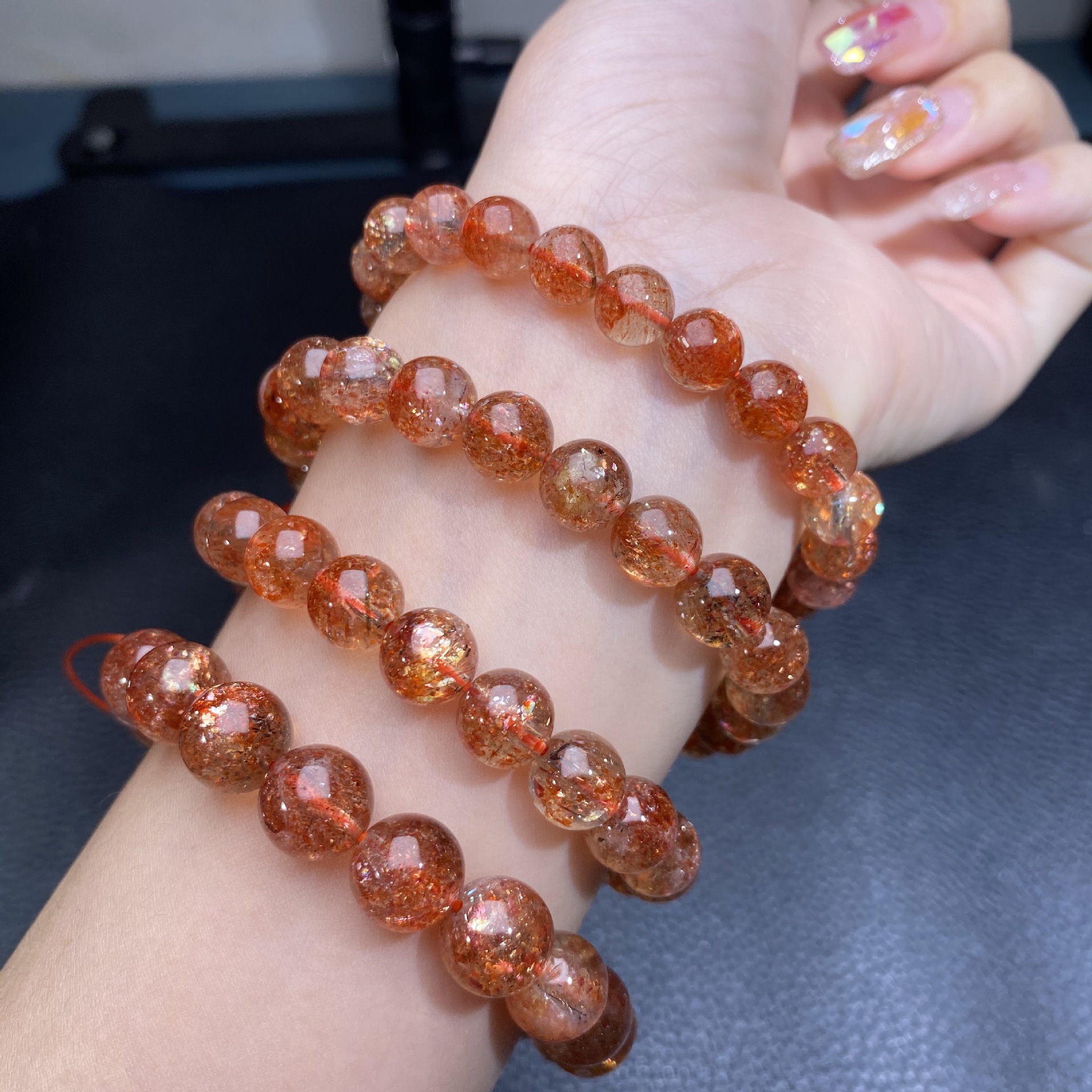 厂家直供金太阳石手链橘红色猫眼金沙太阳石手串金草莓水晶饰品女